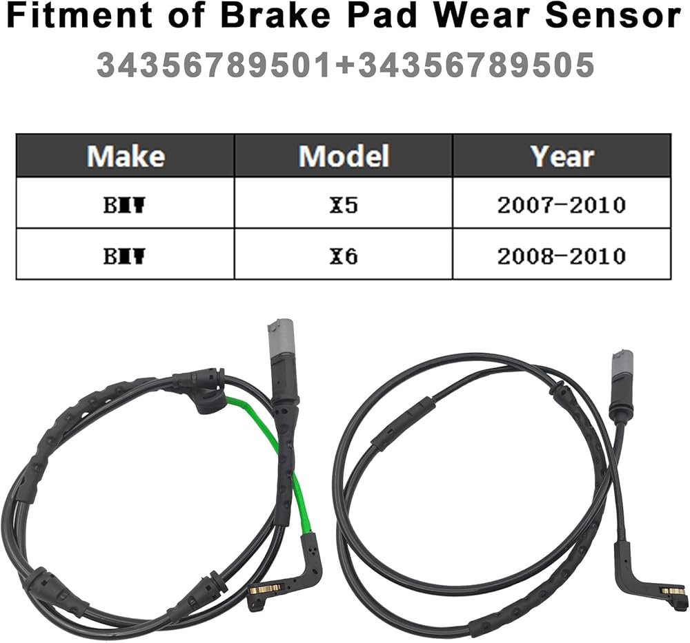 FTTYUHU Front and Rear Brake Pad Wear Sensor 34356789501, 34356789505 For BMW X5 X6 2007-2010