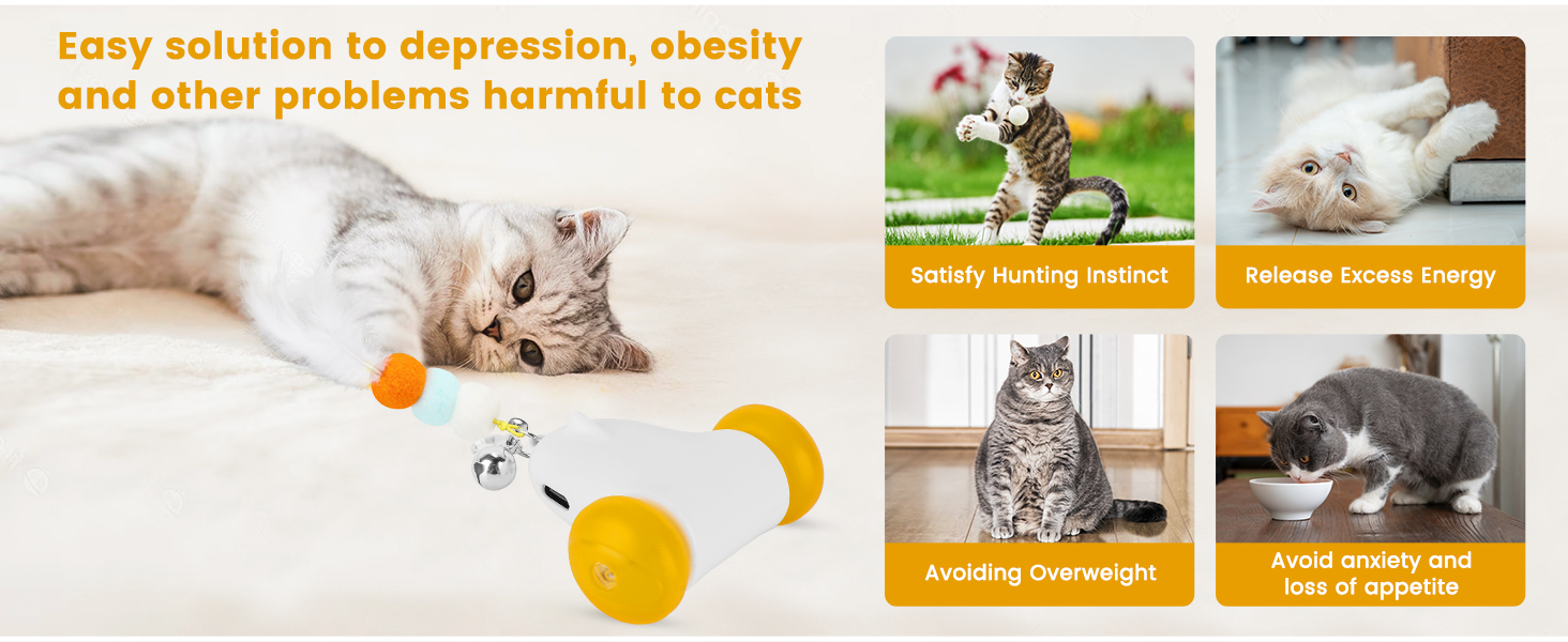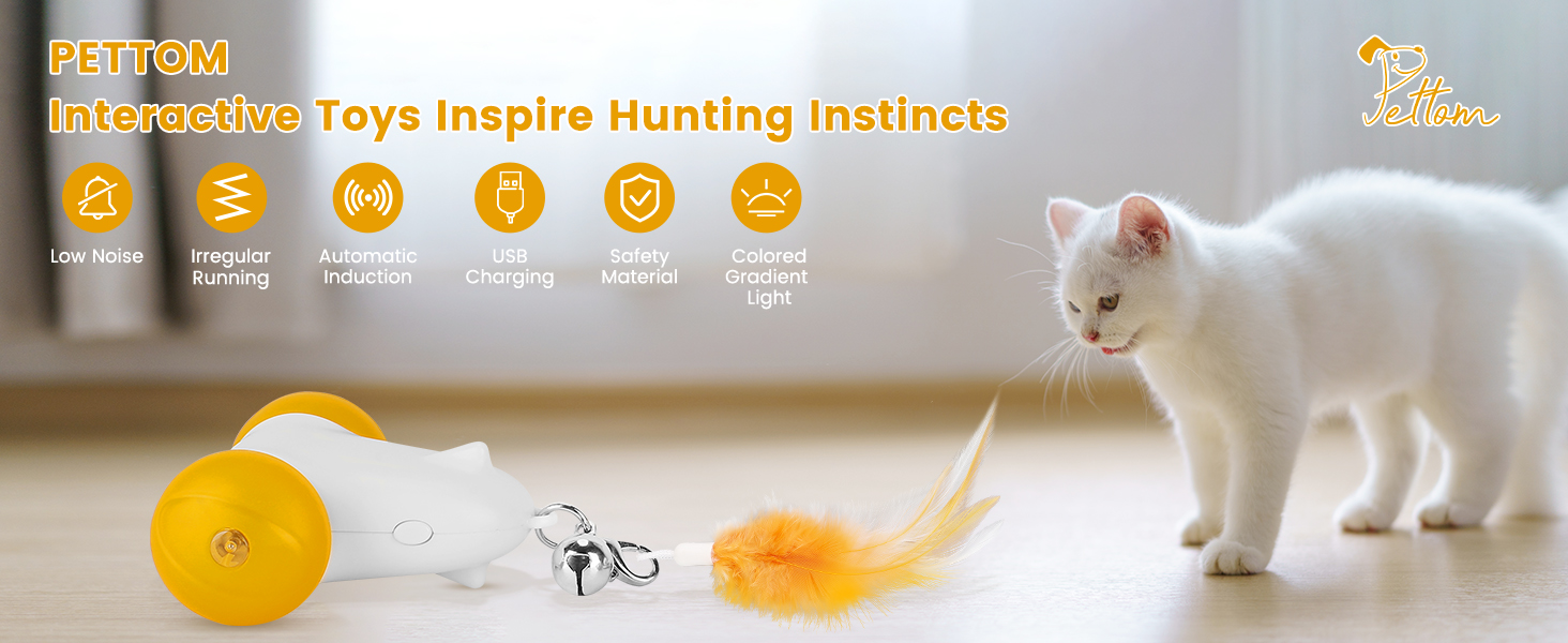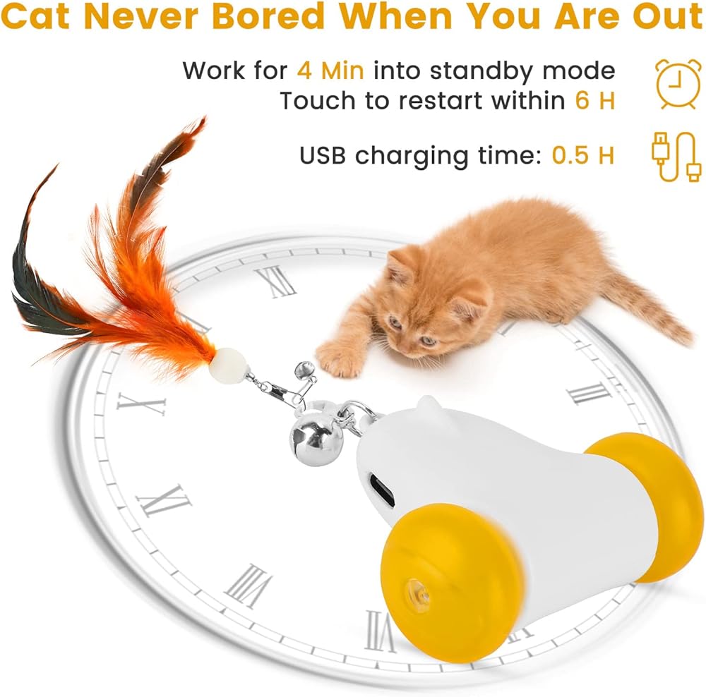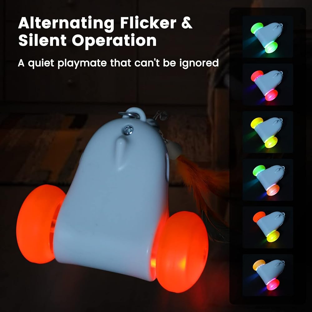 ألعاب القطط التفاعلية من بيتوم للقطط الداخلية، سرعتان مع ضوء LED ملون، تعمل بشكل غير منتظم، ألعاب القطط الداخلية المتحركة الأوتوماتيكية القابلة لإعادة الشحن عبر USB للبالغين مع 3 ملحقات ريش، ألعاب القطط
