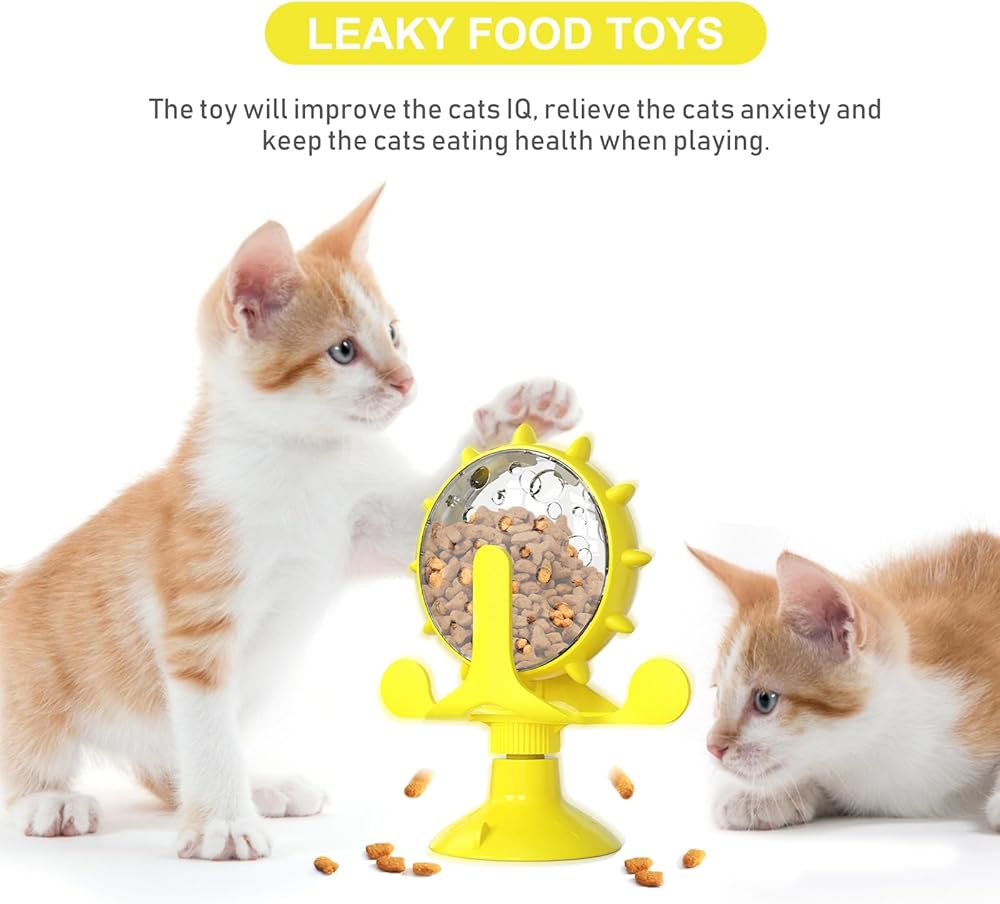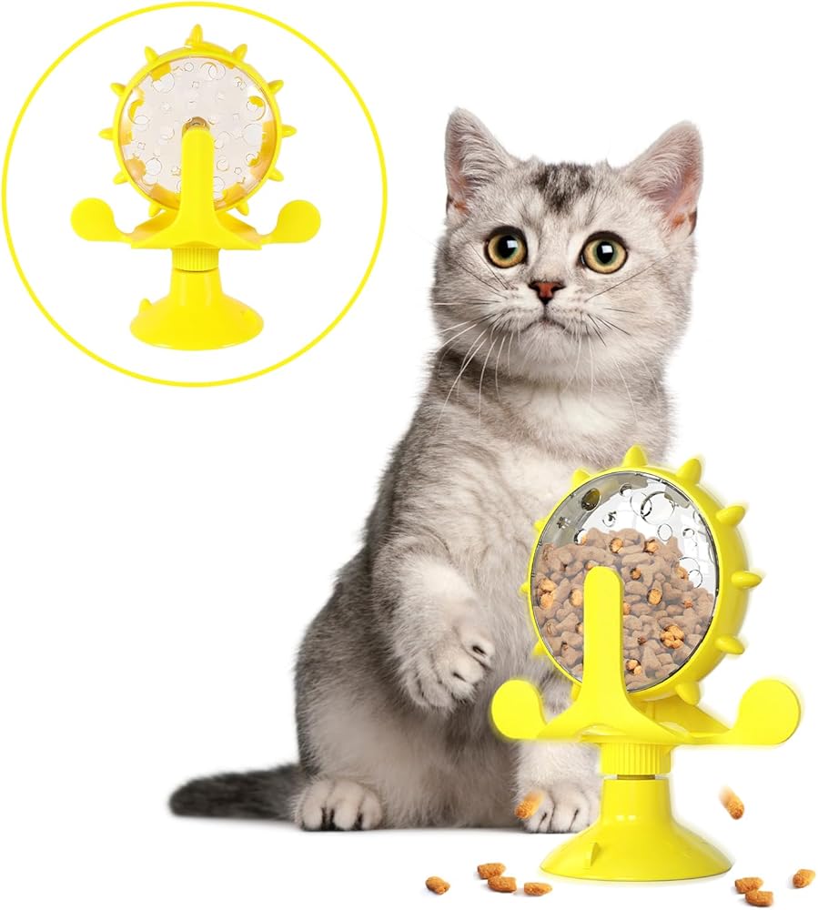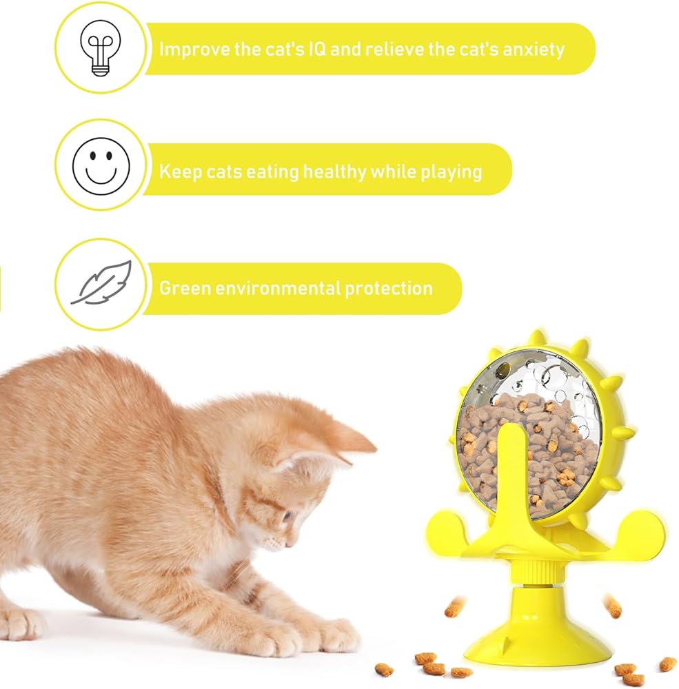 ❤️ 【Durable Material】This cat windmill food dispenser is made of premium ABS and TPR materials, which are resistant to bite, aging-resistant, and safe.