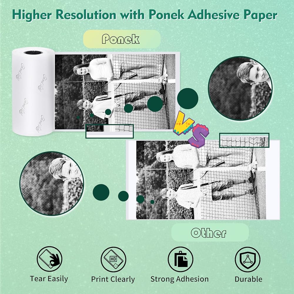 Ponek Self-Adhesive Mini Printer Paper for M02/T02/M02 Pro/M02S/M03/M03AS/M04S Mini Pocket Printer, Sticker Paper for Journal, Photo, Notes, Craft, Black on White, 3 Rolls Thermal Paper 53mm x 3.5m