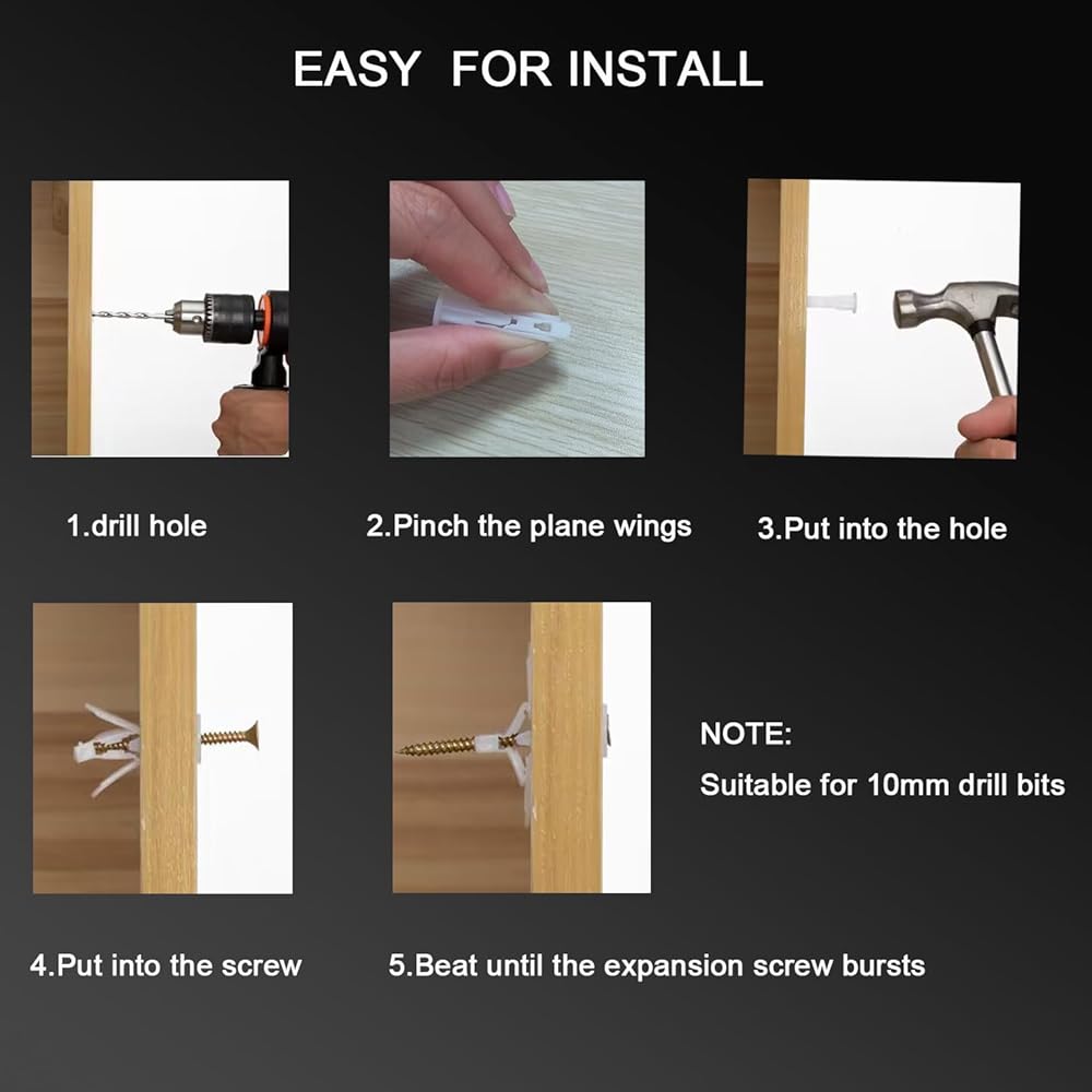Smart design: The split in the ribbed anchors expand on two opposing sides as you tighten the screw , increasing holding power. Anti-rotation structure design of the expansion sleeve can tighten the screw so it will not be followed in the drilling rotation.