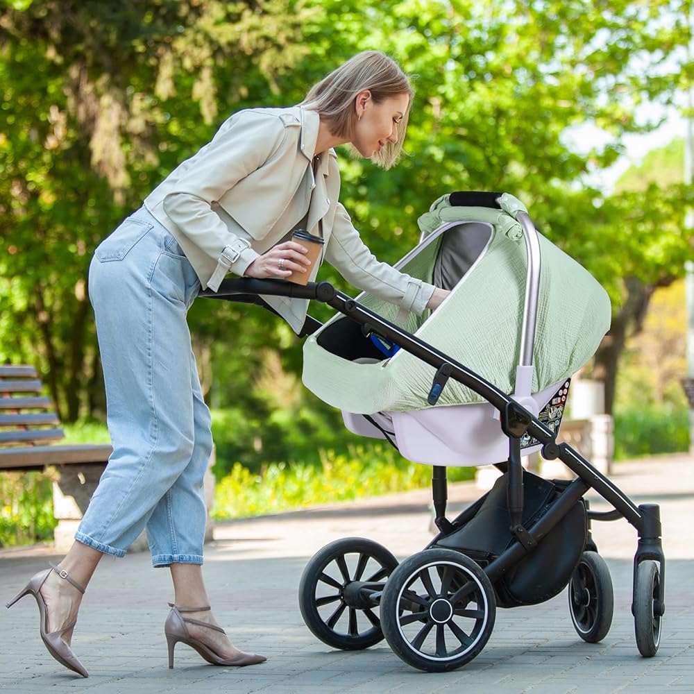 Lightweight Breathable Muslin Cover: Our baby car seat cover is made of high quality cotton muslin, lightweight and breathable, not stuffy. Create a comfortable and safe environment for your baby.
