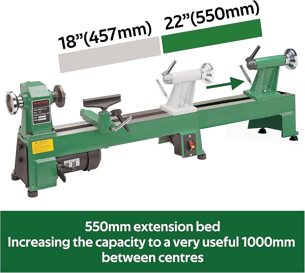 - This extension bed is designed to suit the Harbor Freight Central Machinery 10"X18" Wood lathe in green color