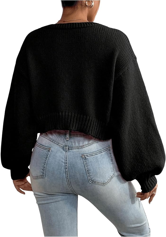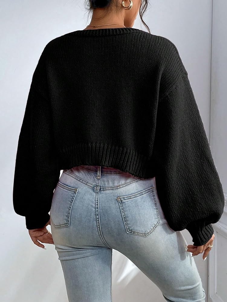 SHENHE Women's Pearl Beaded Open Front Cardigan Oversize V Neck Drop Shoulder Cropped Sweater