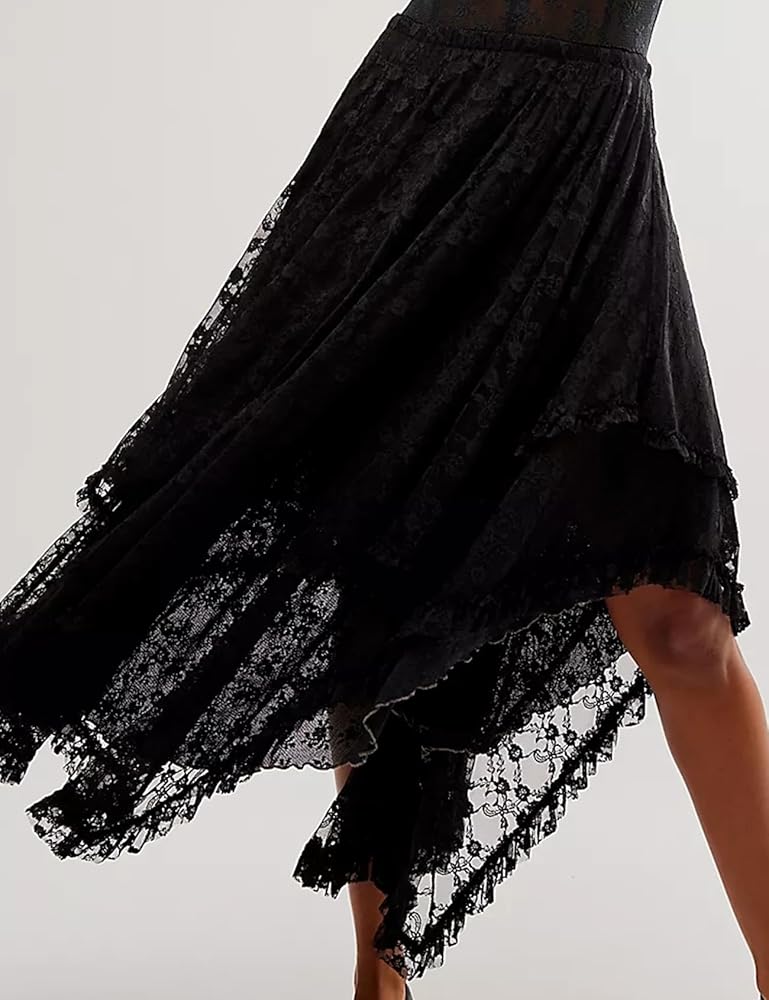 【Gifts】Lightweight and soft flowy lace maxi skirt for ladies. Great gifts for yourself, your friends and family. Hand washing in cold water or gentle machine washing recommended! Do not tumble dry!