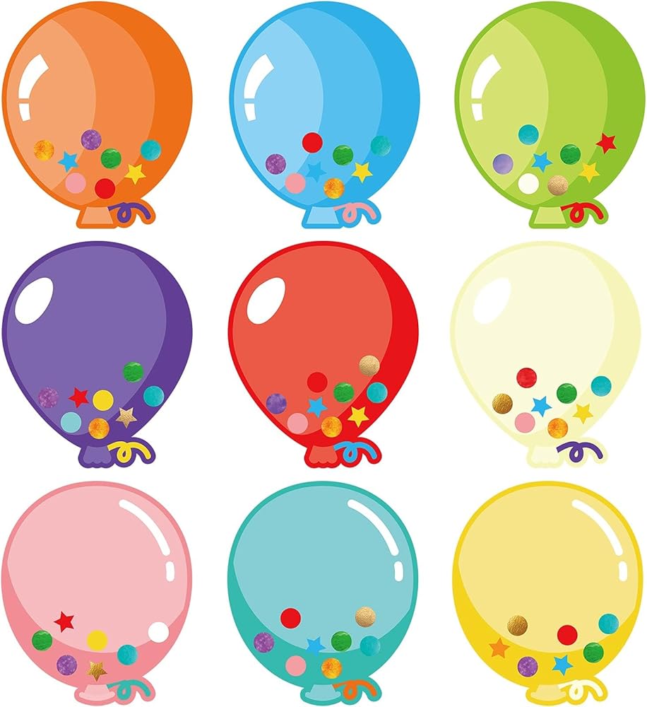 Classroom decoration: assorted shapes and colors balloons cut-outs add a unique style to displays and doors, dress-up your classroom, create awards, decorate for theme parties and back to school party, and more; Balloon cut-outs are suitable for any learning environment; From parties to classrooms, use versatile accents at-home or in the classroom