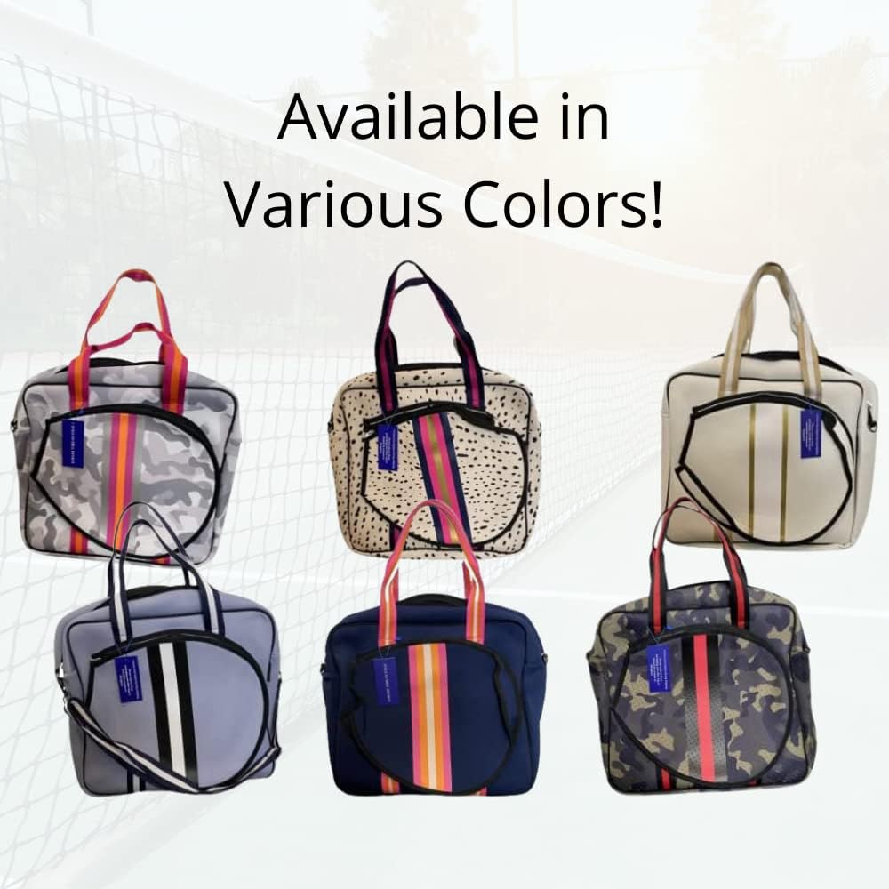 FASHION MEETS FUNCTION Take to the court with this designer sports bag. Choose from animal spots, bright colored stripes, camo, and classic styles.