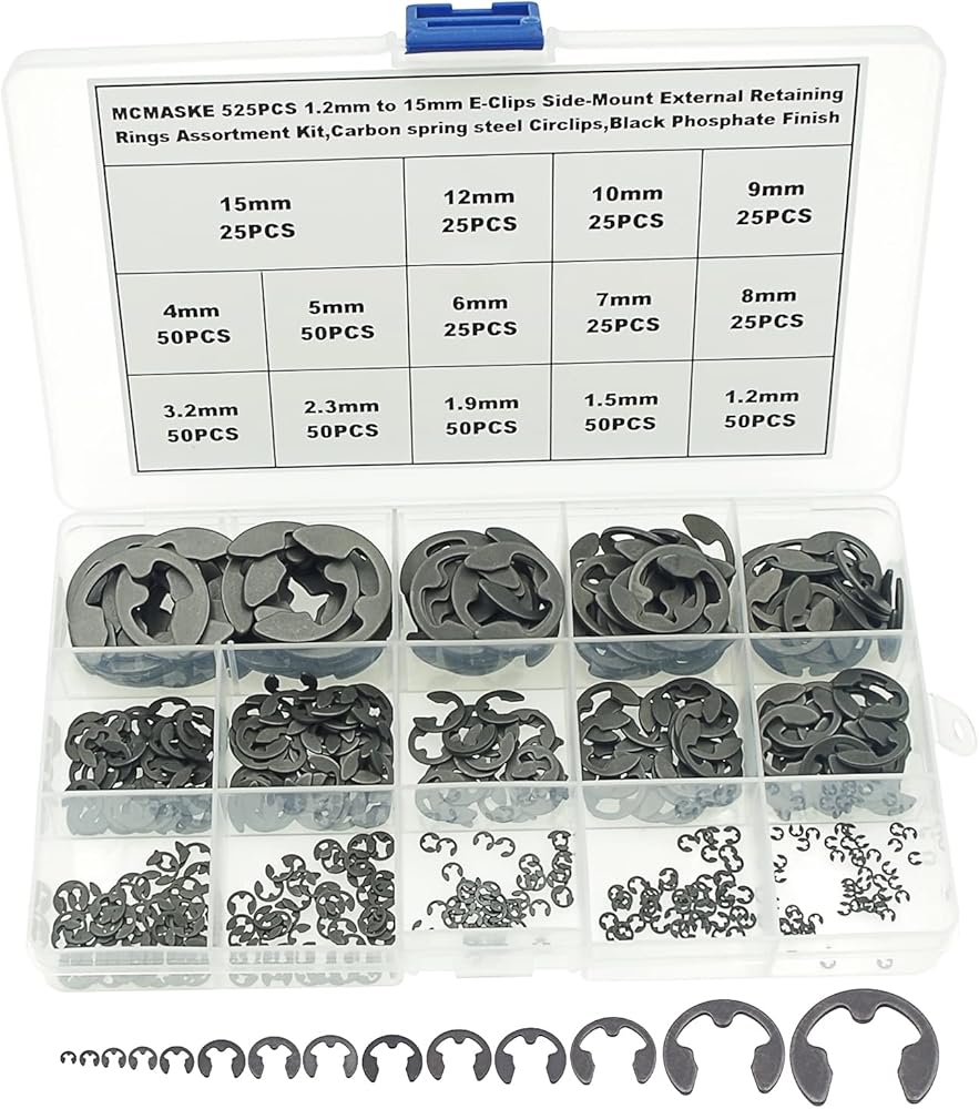 MCMASKE 525PCS Metric External Retaining Ring E-style Circlips Assortment kit Packed in a plastic box