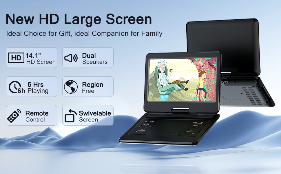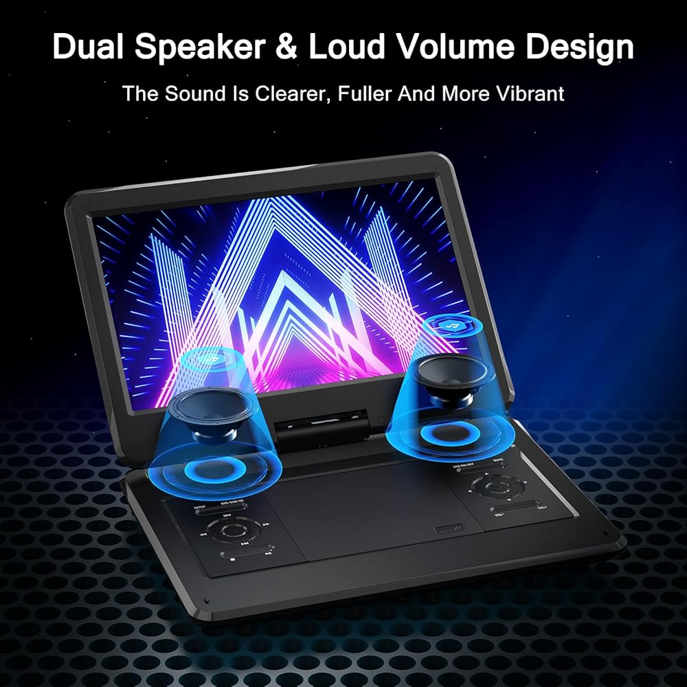 16.9" Portable DVD Player with 14.1" Large HD Screen, 4-6 Hours Rechargeable Battery, Car DVD Player,Regions Free,Dual Speakers, Support CD/DVD/SD Card/USB,[Not Support Blu-Ray]…