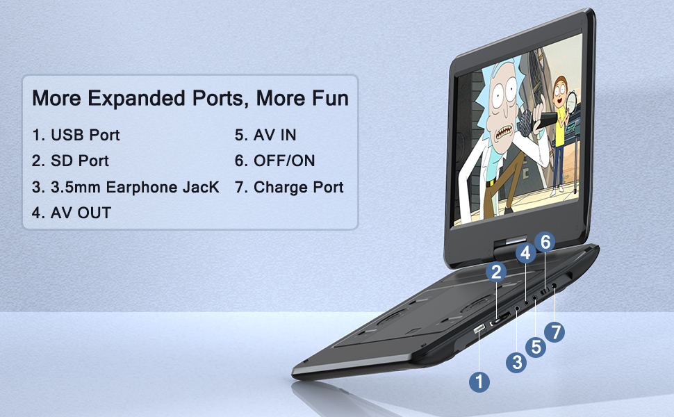 Kids' Companion -- Simple operating system and large volume make this portable DVD player perfect for kids and the elderly. It provides companionship to your children and parents when you have a busy time.