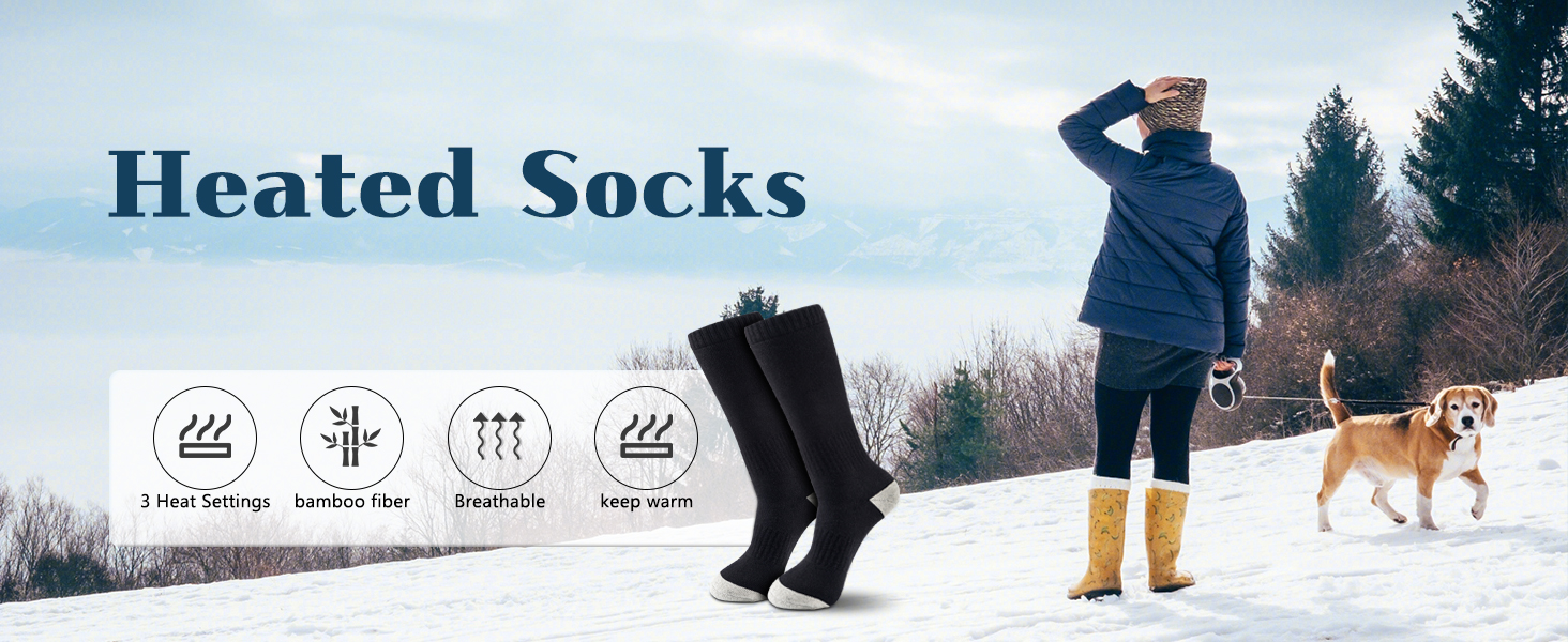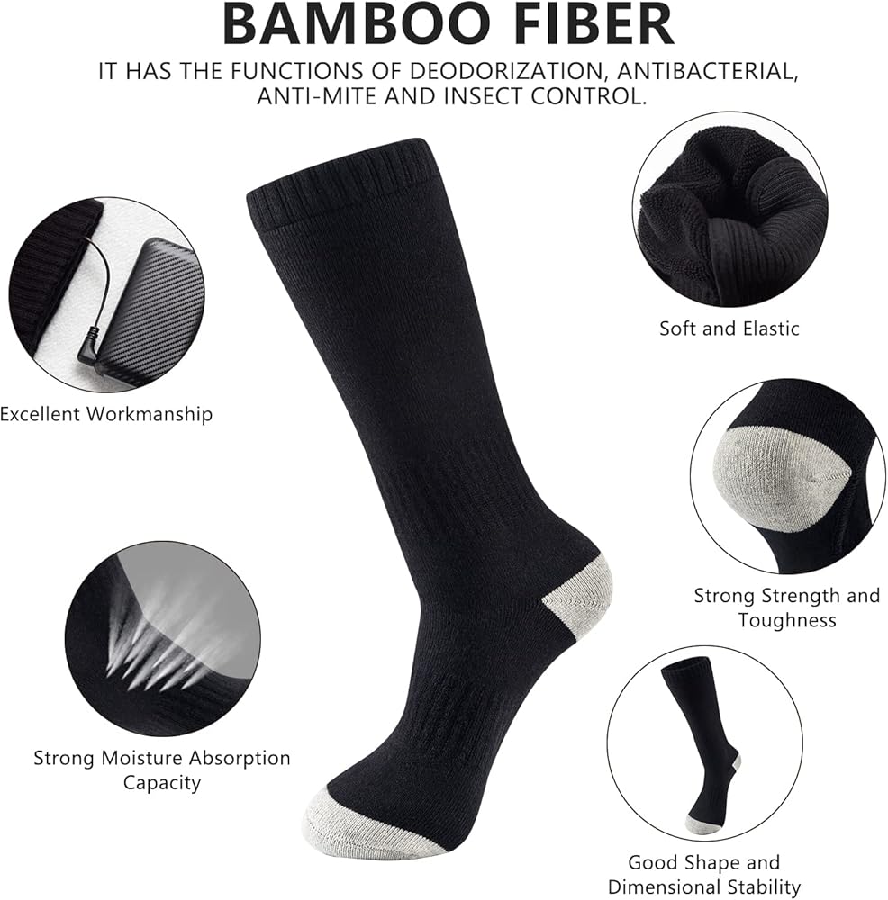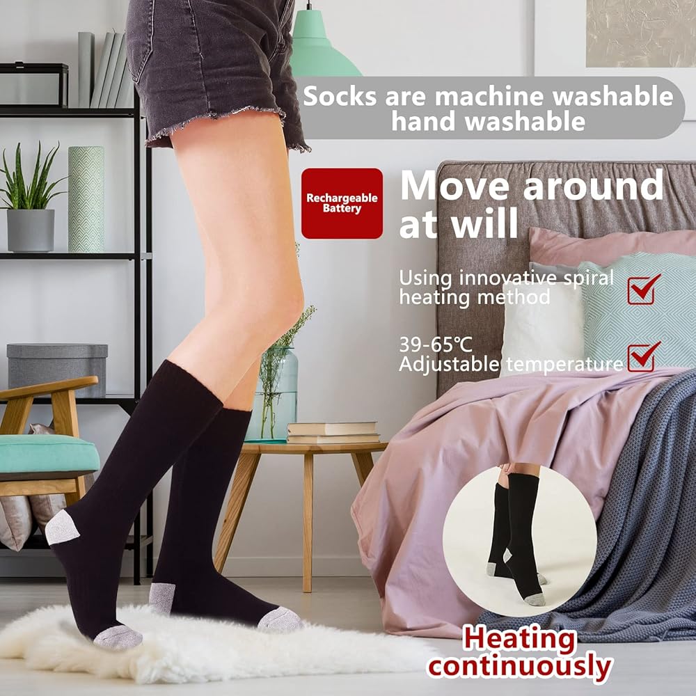 【Applicable Place】Heated socks can be washed by hand and machine. Excellent winter electric socks for skiing, hiking, camping, hunting, fishing, outdoor work and family use.