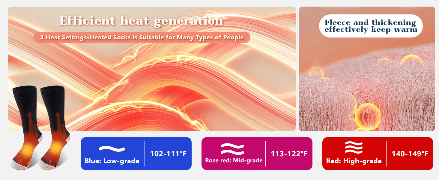 【Premium materials】These electric socks fabrics are made of super stretch fabric, suitable for all sizes. The heating wire is an invisible heating wire, which will not cause any discomfort when worn on the foot.