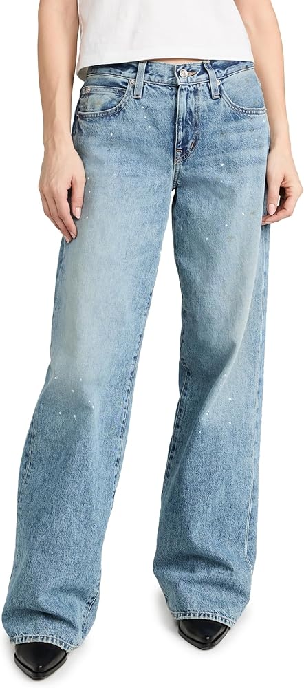 Runs true to size., Designed with a low rise and an oversized wide-leg silhouette. Inseam runs long. Denim has no stretch and may feel snug initially, but will soften and give with regular wear.