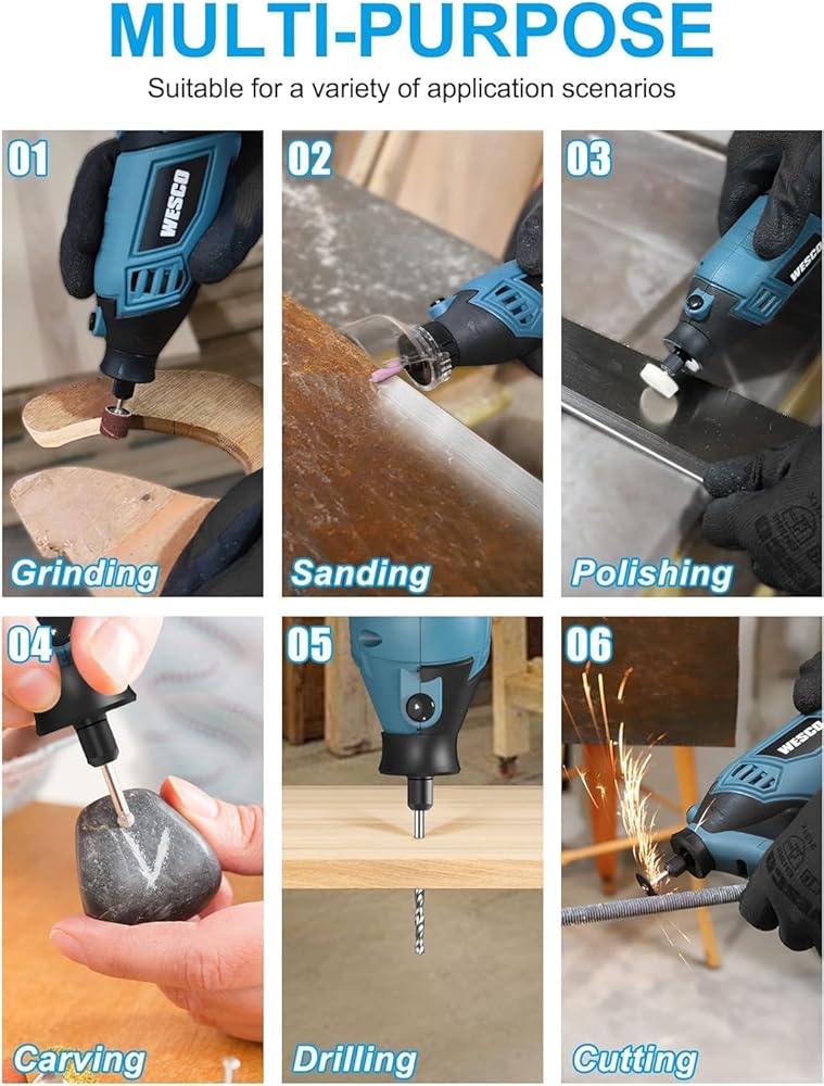 【160W MOTOR & VARIABLE SPEED】A 160W motor drives a wide range of rotation speed of 8000-35000/min, covering almost all of your needs for cutting, sanding, drilling, polishing, carving, sharpening, engraving and cleaning