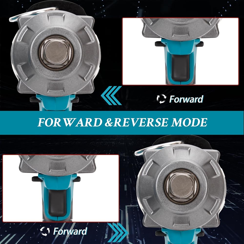 🔧TWO-WAY BRAKE- The cordless impact wrench has two modes, forward and backward, in backward mode, once the bolt or nut is loosened, the brake will be activated to reduce the speed and torque, so that the bolt or nut won't fly around, protect your safety and reduce the risk.
