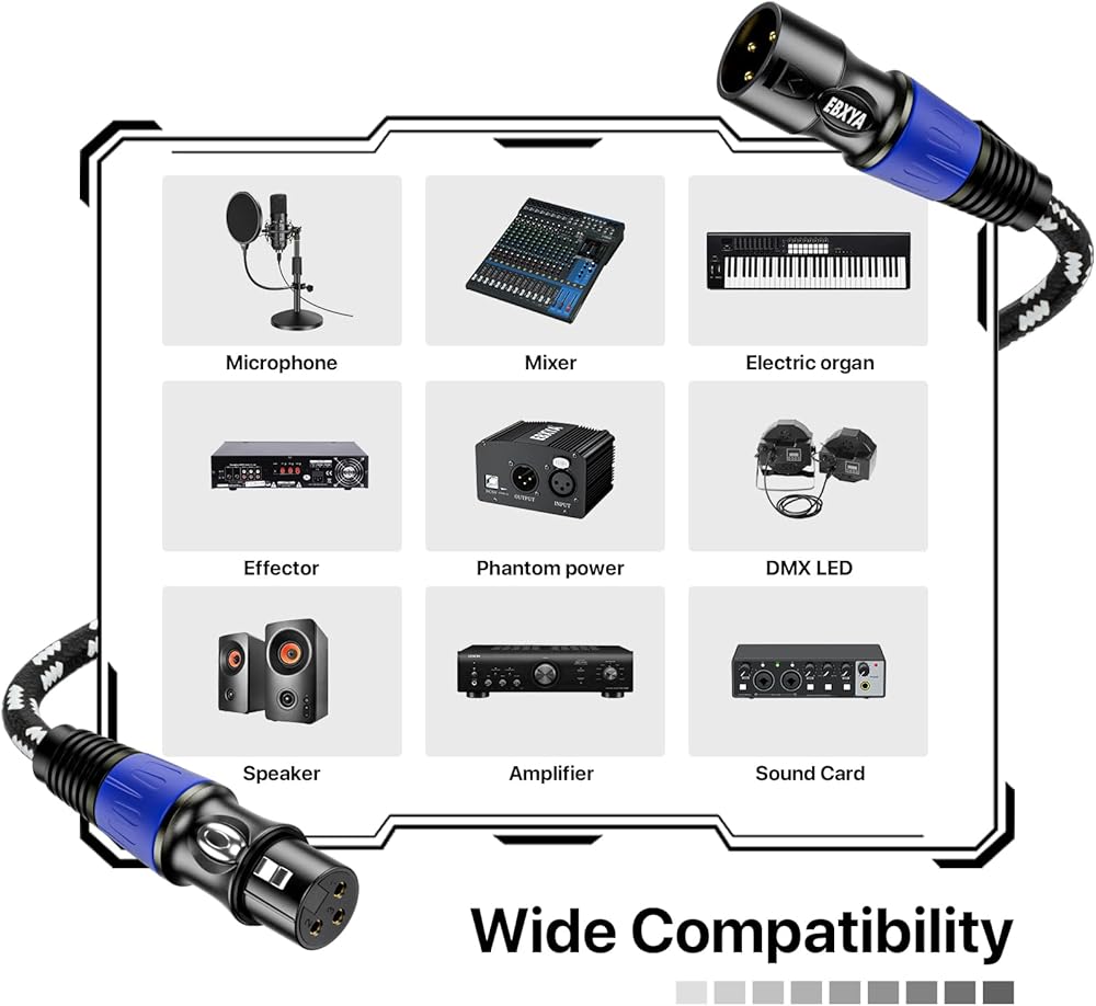 WIDE COMPATIBILITY: The 3-Pin XLR cable can be used on any equipment equipped with 3-Pin XLR, such as microphones, amplifiers, mixers, phantom power supplies, speakers, stage dmx light, etc. Let you enjoy your music life anytime, anywhere. At home, outdoors, parties, studio recording, live sound and other occasions.