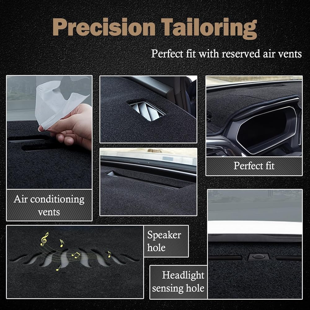 🚗🚗🚗【Customized Design】- Laser cutting, customized car mold opening, perfect fit, and the fine stitching is suitable for the arc of the original car. All defrost and AC vents are pre-cut. The back of dashboard cover mat is made of non-slip silicone particles, also equipped with Velcro, which further strengthens the fixing.