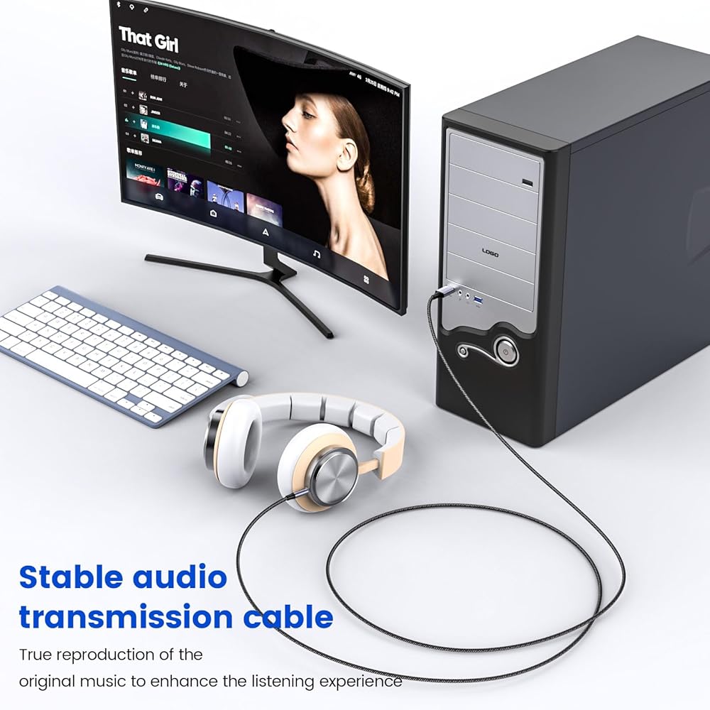 【USB Male to 3.5mm TRS Cable】This USB Male to 3.5mm TRS Cable is made of high quality nylon braided jacket, flexible and elastic. The cable can be bent in any direction to prevent twisting and tangling, making the device more flexible and durable, and can support at least 10,000 times of plugging and unplugging, so it can easily cope with daily heavy use.