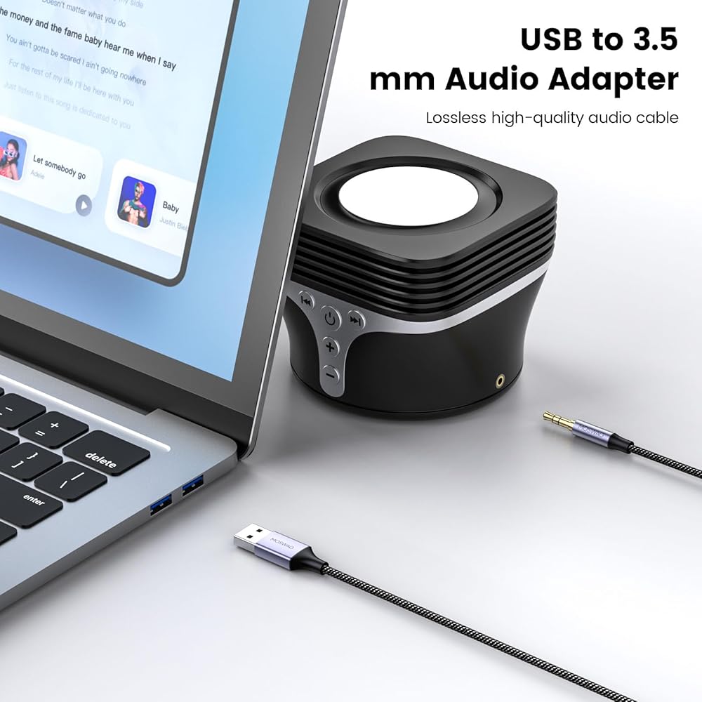【Plug and Play】This USB audio cable is ideal for replacing a faulty sound card or audio port. It makes it easy to add a 3.5mm auxiliary port (audio out connector) to your device. Suitable for any device with a standard 3.5mm audio jack, plug the USB port into your computer and the computer will convert to an audio cable. Simple USB connection, no additional drivers required. Note: Recording and charging are not supported.