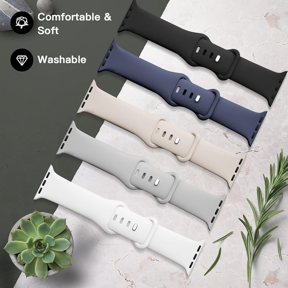 5 Pack Silicone Sport Straps Compatible for Apple Watch Band 38mm 40mm 41mm 42mm 44mm 45mm 49mm for Women Men,Soft Waterproof Wristbands for iWatch Series 9 Ultra 8 SE 7 6 5 4 3