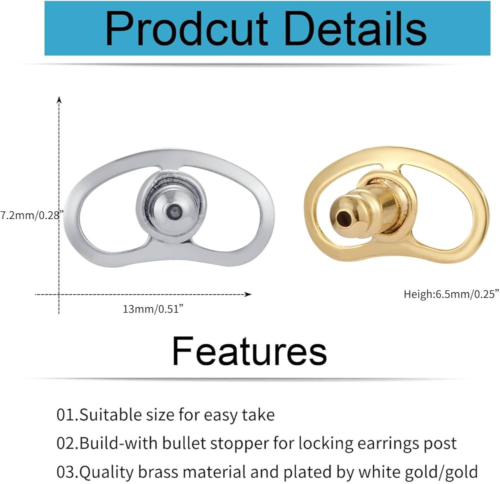 [Quality Earring Backs ] This earring supoort backs are crafted by brass and plated by white gold. It look beautiful for match your earringsButterfly stoppers are easy to wear and put on.