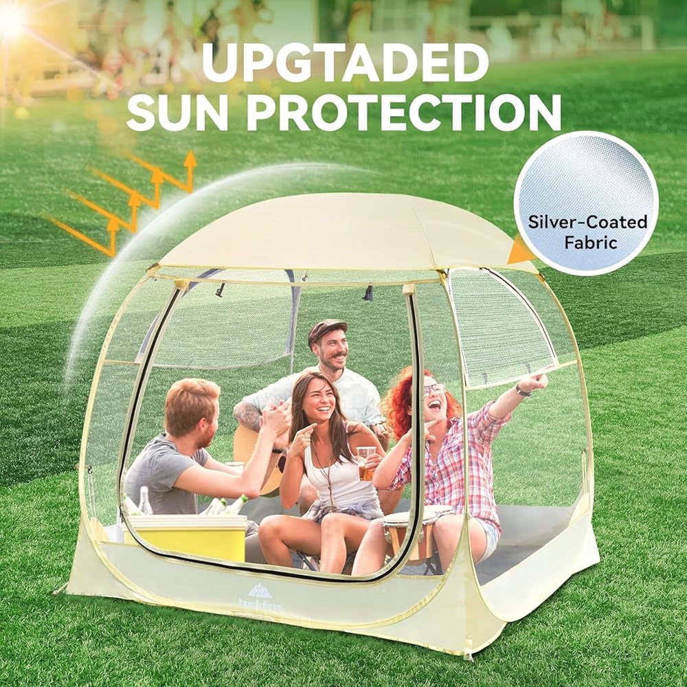 Sun-Protective and Sturdy: The instant sport tent with silver-coated fabric gives you extra sun protection to help keep temperatures cool in summer, while the outdoor bubble tent is made with a sturdy fiberglass frame and durable fabric to protect you from snow and rain in winter.