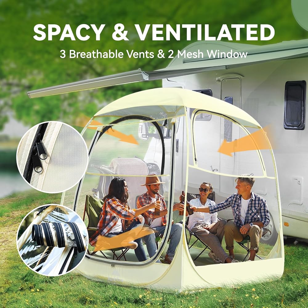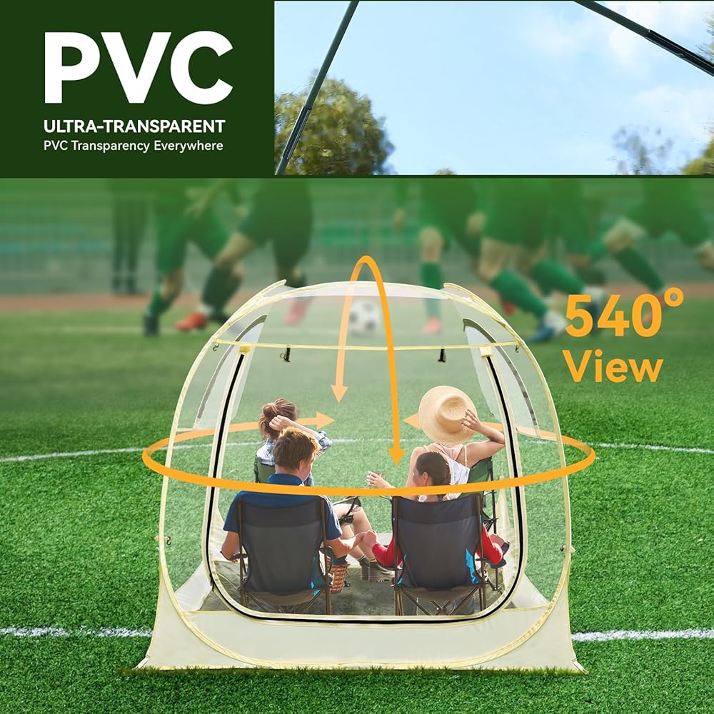Clear 540-Degree Views: The clean bubble tent has 5 transparent sides that provide a clear 540-degree view. Three air vents on the side windows are PVC and mesh to provide good ventilation in hot weather and prevent mosquitoes.
