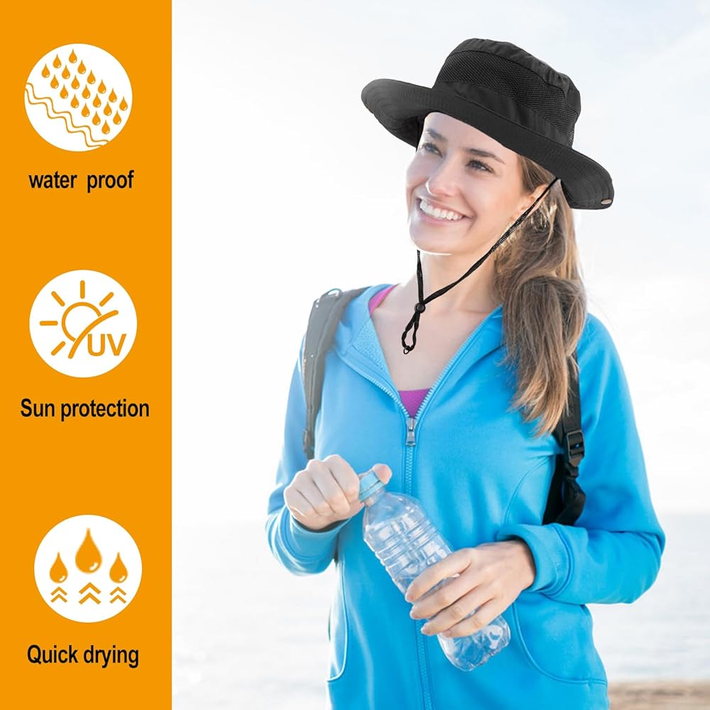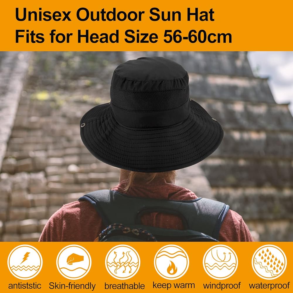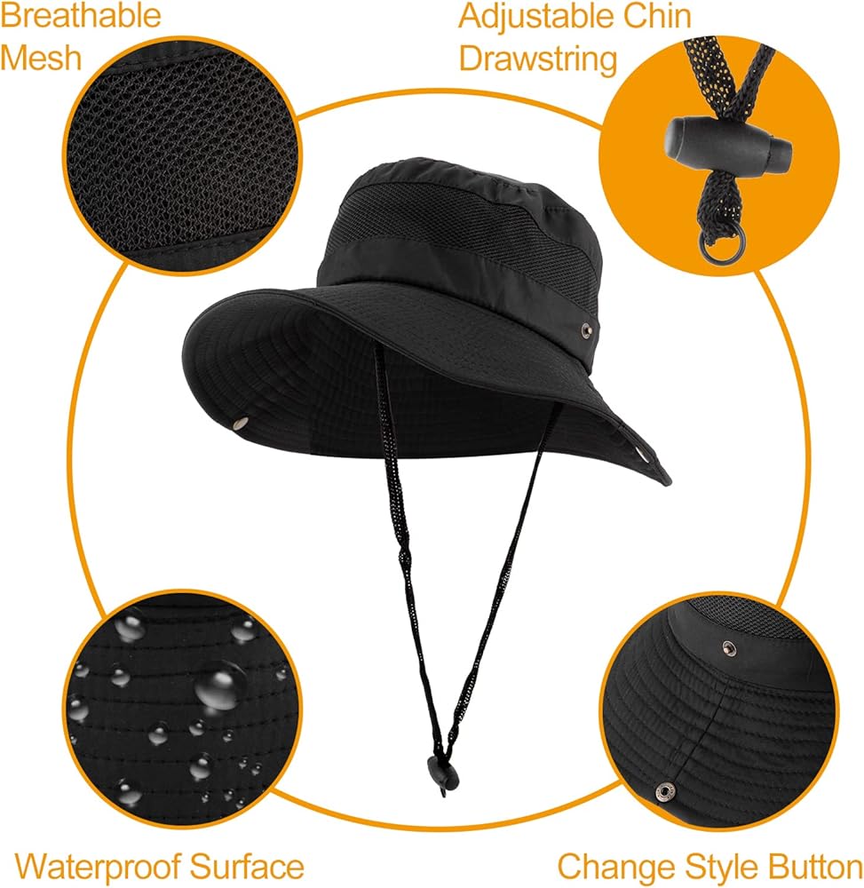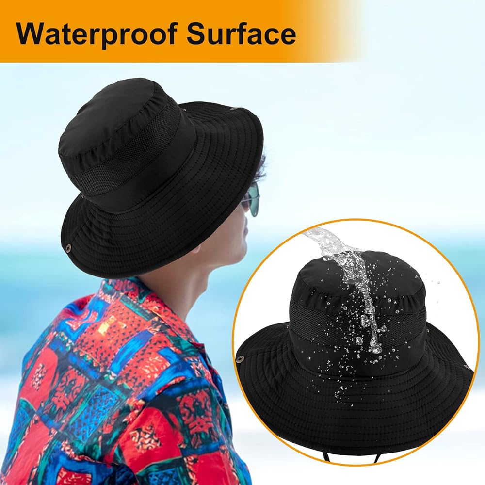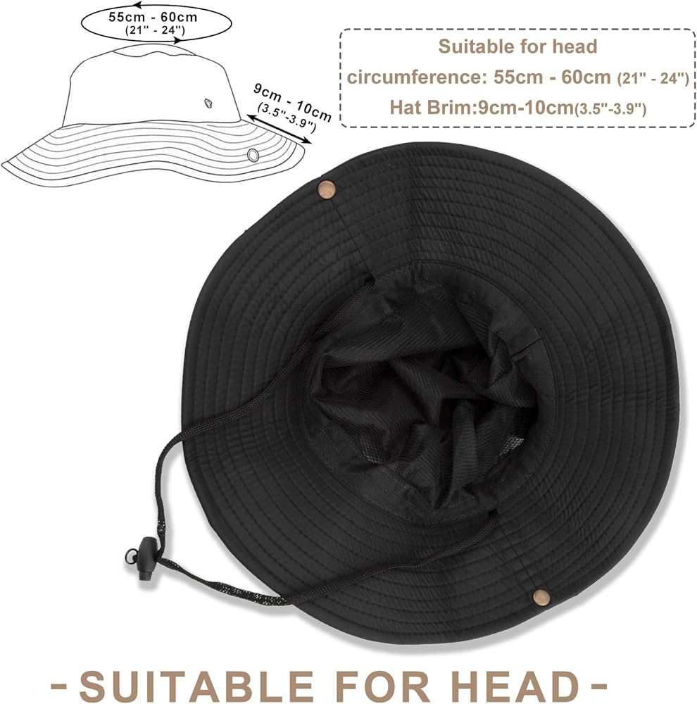 Adjustable & Breathable: Adjustable chin cord holds hat in place even in windy or rainy conditions. Includes an internal moisture wicking sweatband. Mesh crown inside keep your head cool and ventilated.