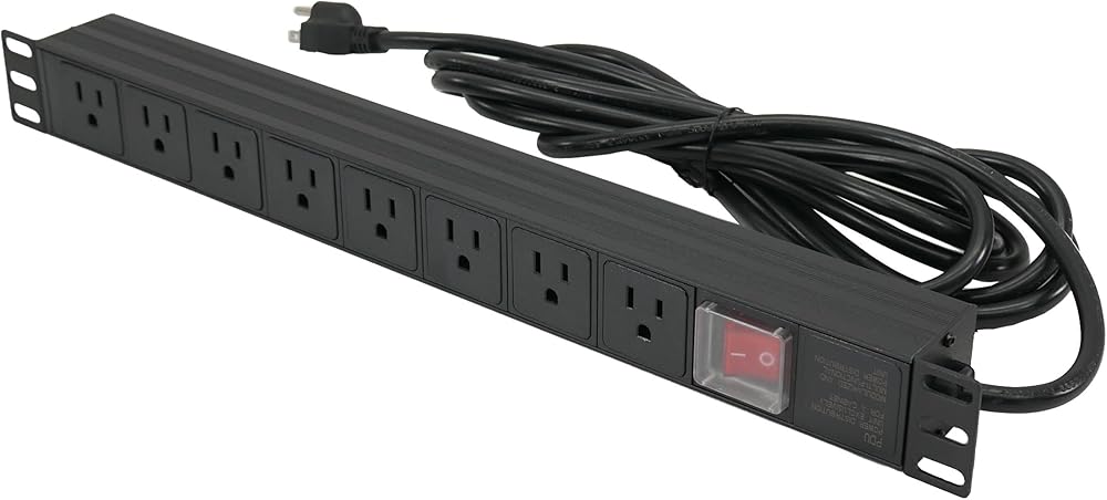 CNAweb Power Distribution Unit 19" 1U Rack Mount PDU 8 Outlet 12 Foot Power Cord - Black