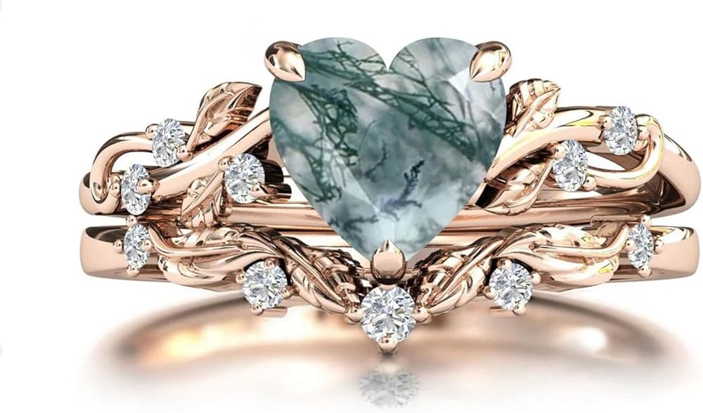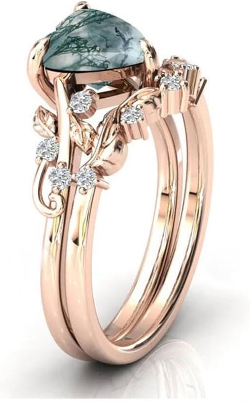 【Beautiful and Unique】This beautiful leaf moss agate ring. Use natural moss agate stone. The gemstone is a beautiful transparent to milky white with moss-like green filaments. And get a beautiful sheen by polishing.This is a beautiful, stunning, feminine ring that works well for all occasions, styles, and ages. You will love it!