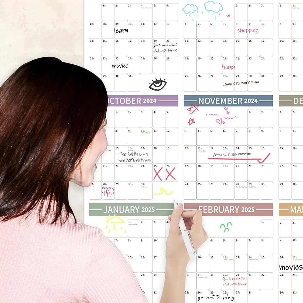 Easy Personalization: Our Full year calendar 2024 one page comes with 40 foam stickers that install easily on any flat surface, ensuring it stays securely in place all year round. Bring the giant paper calendar 2024 into your office and keep organized with your team togather.