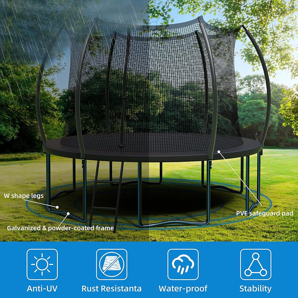Weather-resistant: The ALTLER Outdoor Jump Trampoline is designed to withstand various weather conditions, allowing you to enjoy endless hours of bouncing fun outdoors.