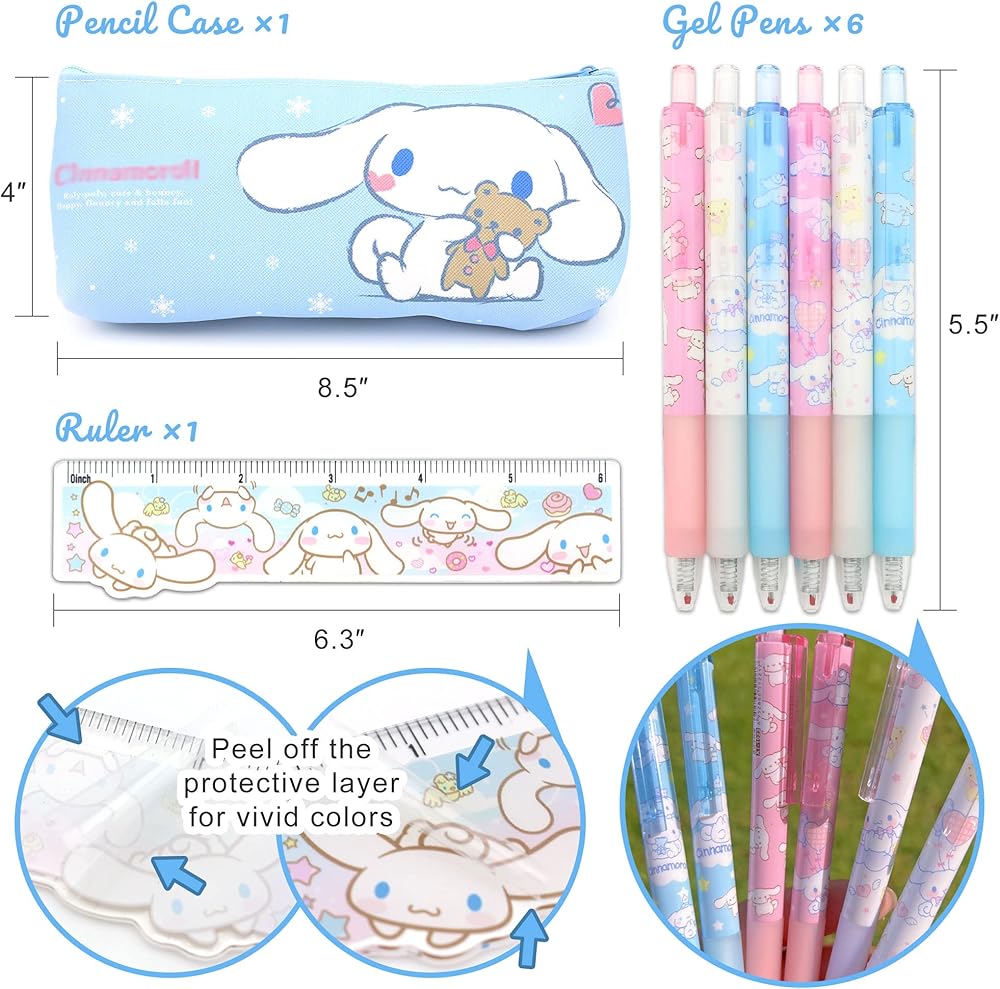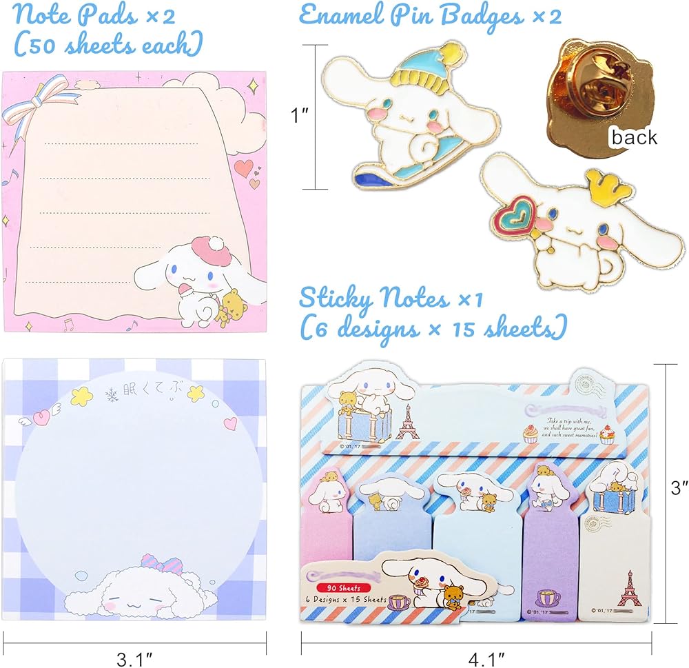 - Package: Includes 1 Pencil Case & 1 Ruler & 6 Gel Pens & 1 Card Case With Lanyard & 2 Enamel Pin Badges & 2 Note Pads (50 Sheet) & 1 Sticky Index Note (6 Designs x 15 Sheets) & 40 Stickers