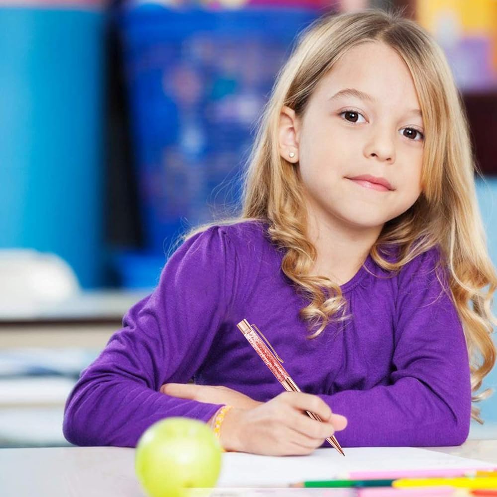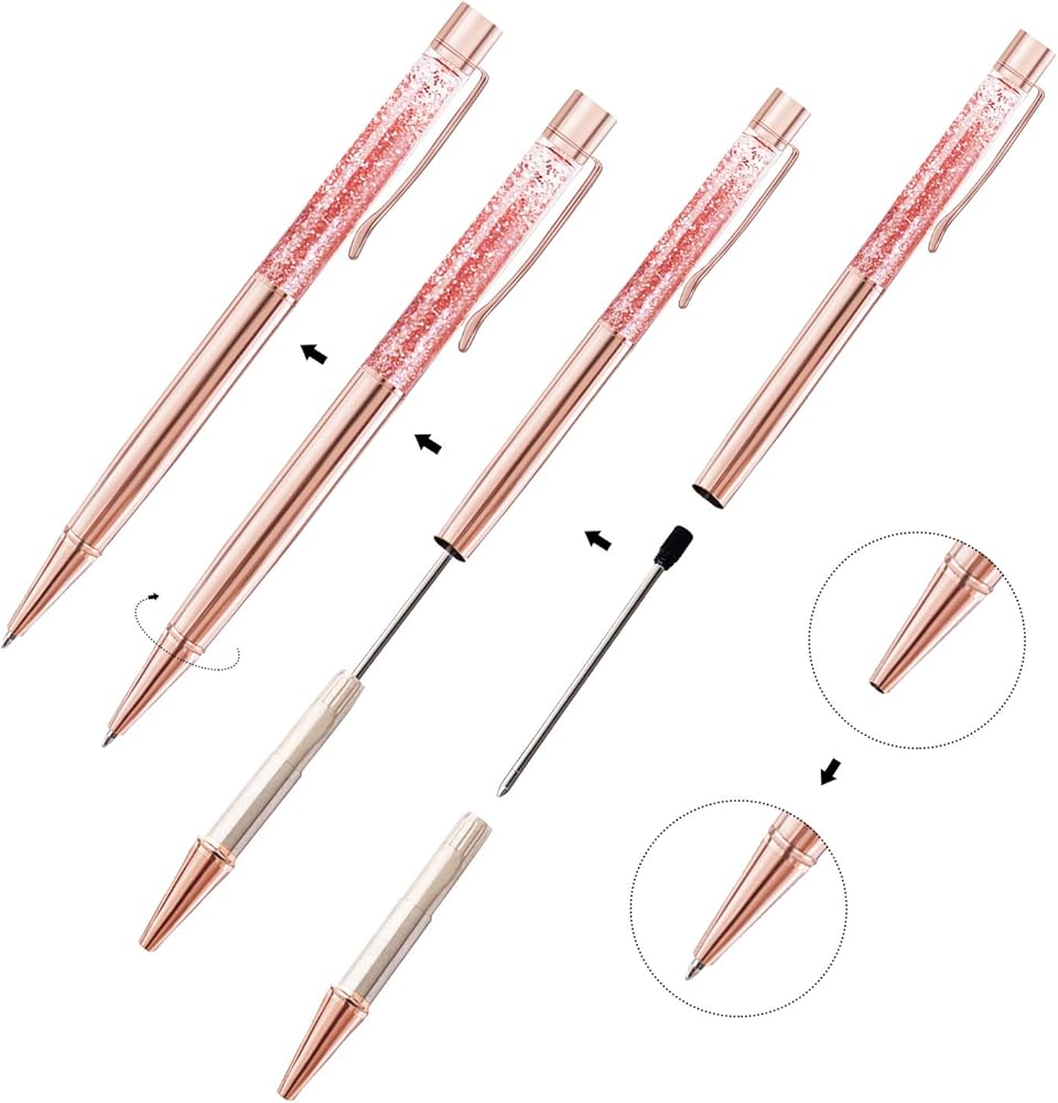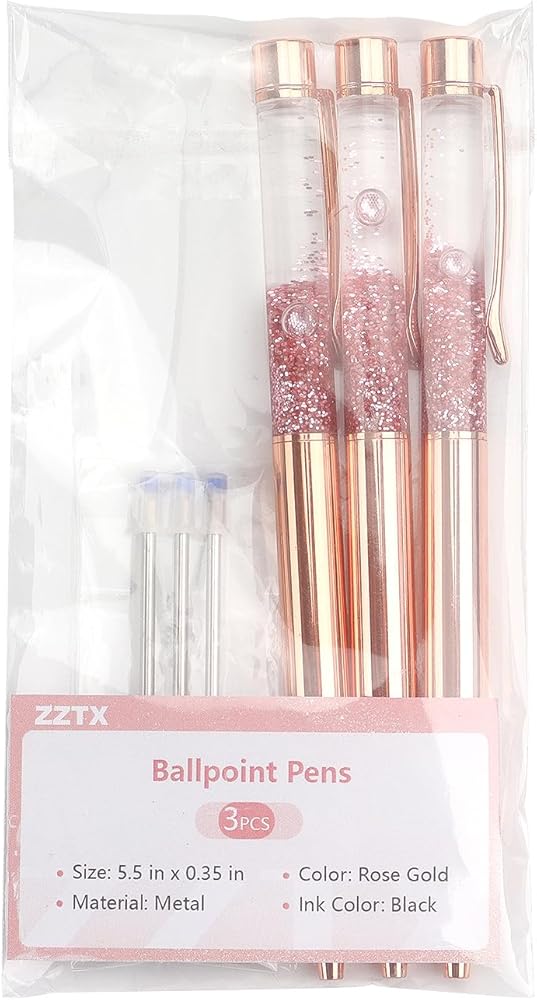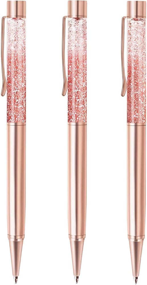 ZZTX 3 Pcs Rose Gold Ballpoint Pens Metal Pen Bling Dynamic Liquid Sand Pen Pretty Pens With Refills Black Ink Office Supplies Gift Pens For Christmas Wedding Birthday