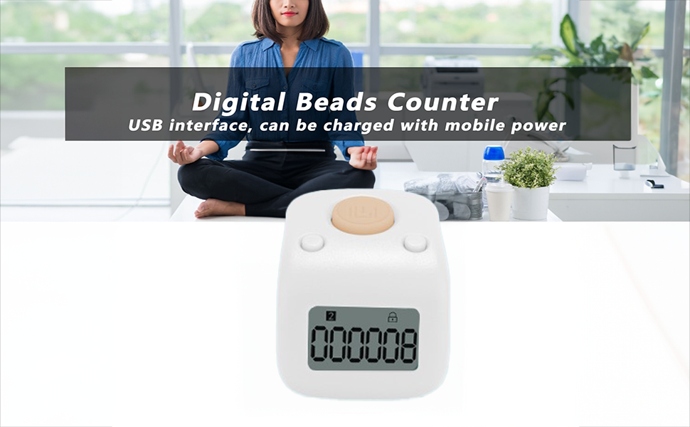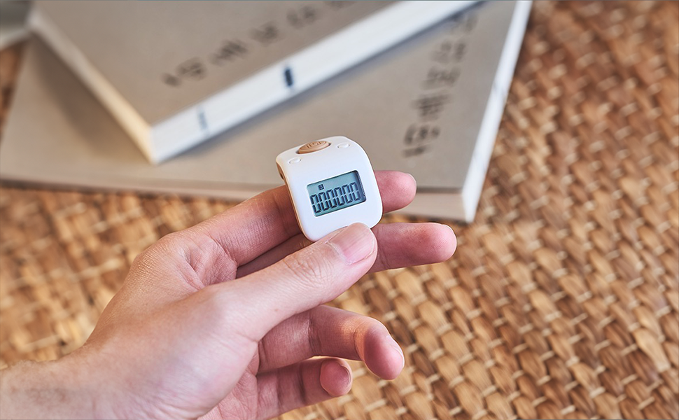 Jaxenor Digital Beads Counter - Mini Chanting Counting Tool for Buddhist Meditation (Ring, White)