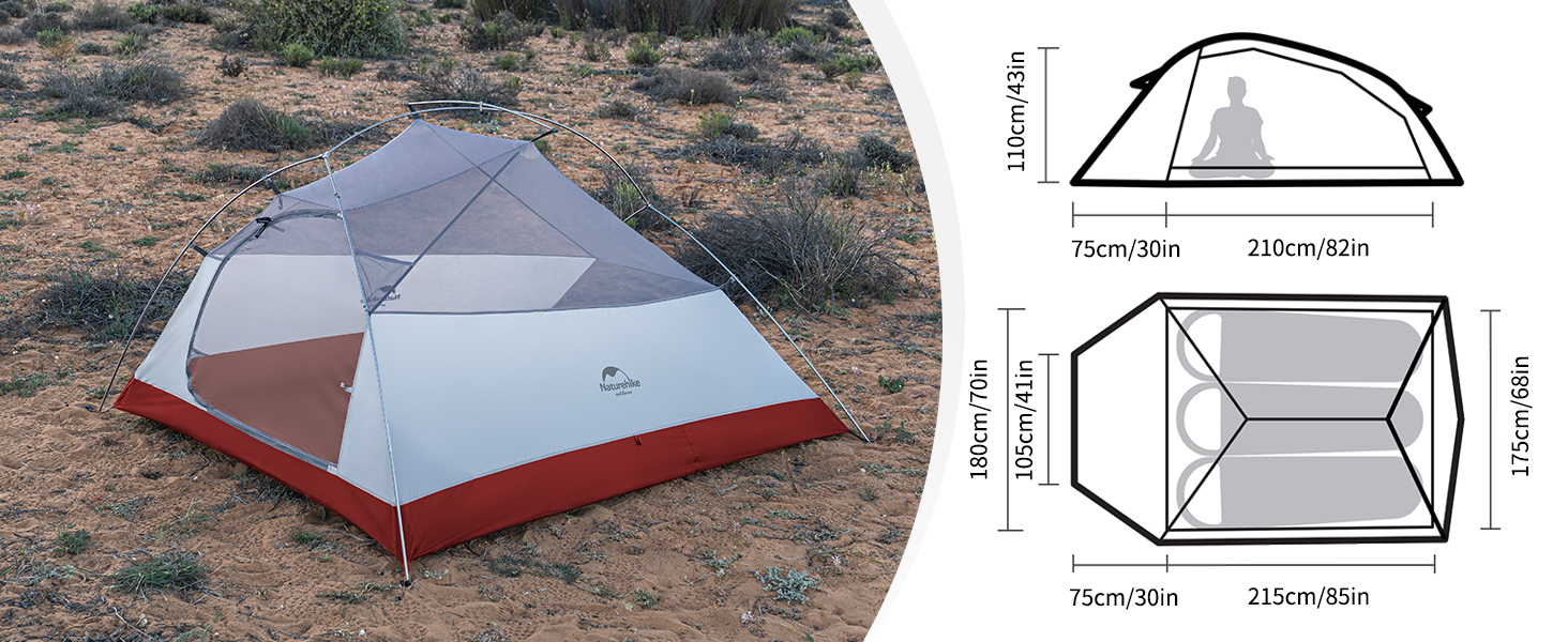 DIMENSIONS for 3 PERSON-- Inner layer size: 85(L) x 71(W) x 43(H) inches. Outer layer with extra 34inch long vestibule for storage room: 118(L) x 76(W) x 43(H) inches. Package size: 17.7(L) x 5.9(W) x 5.9(H) inches. Weight: 4.9lbs (including tent and all accessories). THE LIGHTEST 3 PERSON TENT ON AMAZON EVER.