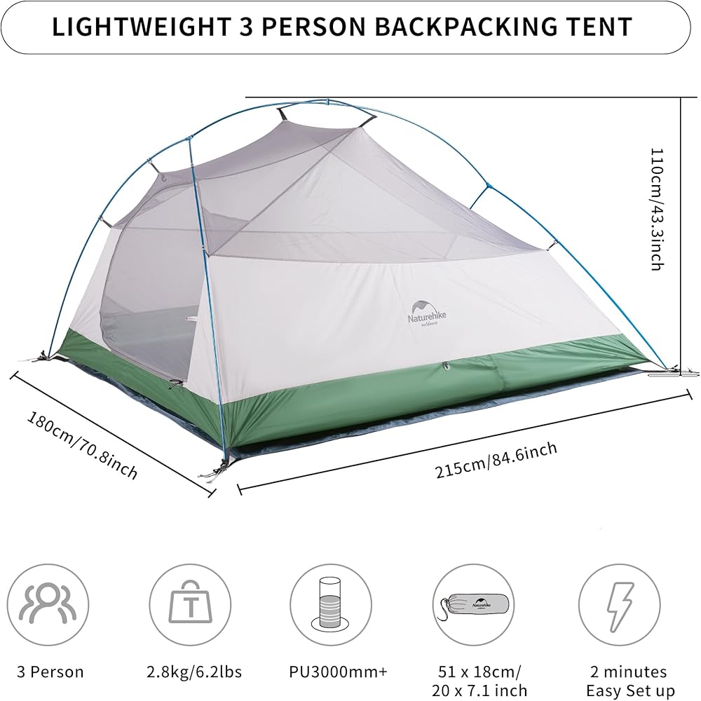 GREAT VENTILATION BACKPACKING TENT-- Upgrade Version of Cloud-Up 3, additional 2 ventilation windows, prevent condensation water from building up.