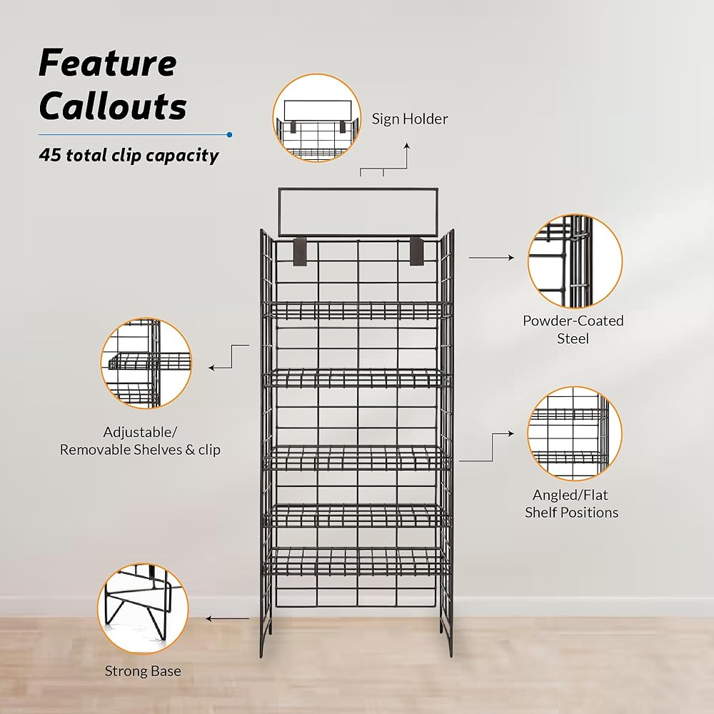 Multiple Layers: The rack features multiple layers, allowing you to display a variety of products on different levels, maximizing space and visibility.