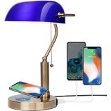 【Wireless Charging & USB Port】The wireless charging pad at the base of this banker desk lamp and the USB port can charge your mobile phone and other small electronic devices. It has a good charging function and avoids tangled charging cables, saving a lot of space.Charging function works whether this blue bankers lamp is on or off.