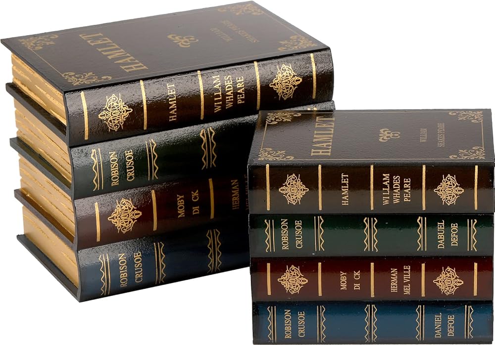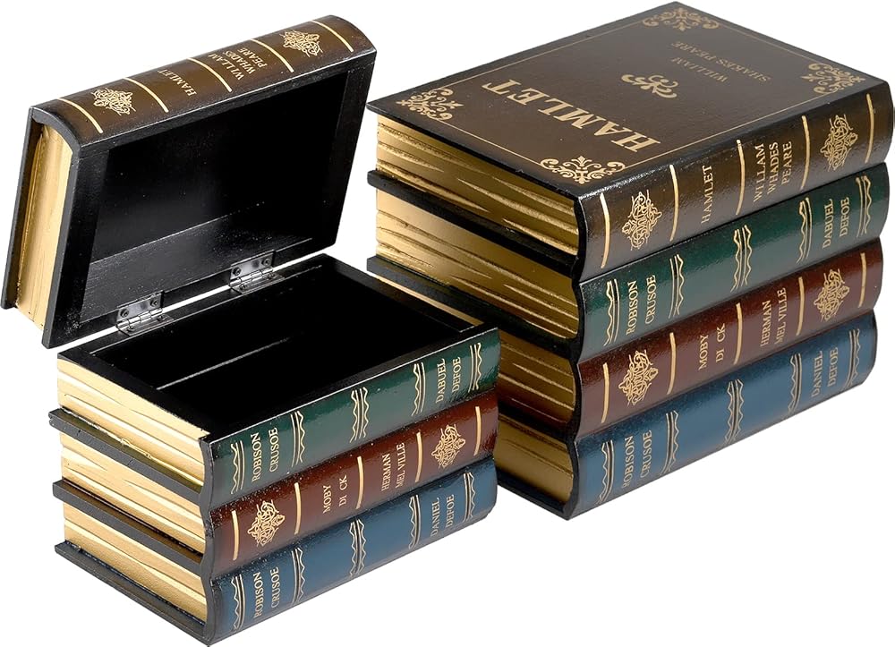 - Package includes 2 decorative book boxes with Hamlet print, each box contains 4 books. Different size and color to create a vivid look.