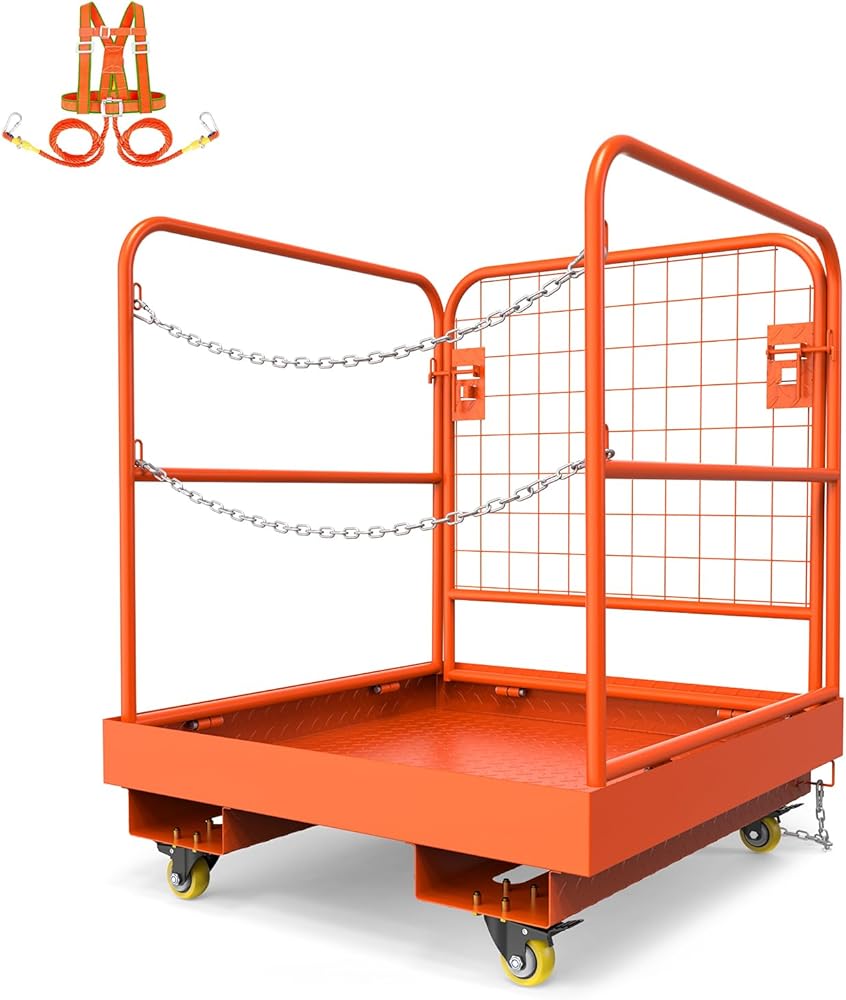 MULTIPLE APPLICATIONS: This forklift man basket is convenient for various aerial tasks, such as changing lights, painting, tree service, and roof repairs. Our forklift cage equipped with four locking swivel casters, it can function not only as a safe aerial work platform but also as a loading basket on the ground, providing easy mobility and utmost convenience.