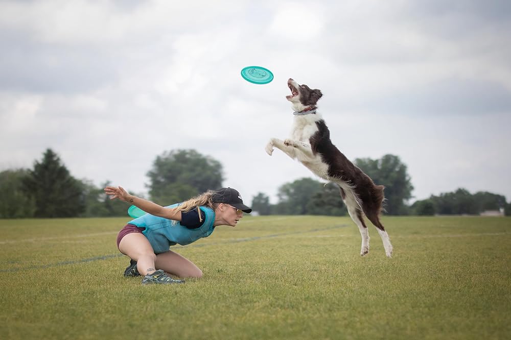 DO-IT-ALL LIGHTWEIGHT DISC – Lightweight with reliable and consistent flight, great for toss and fetch all the way up to training for competition. Easy to throw and great glide so dogs have more time to catch it. Floats in water.