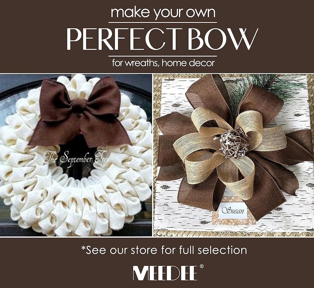 VERSATILE CRAFTY FUN: Burlap ribbon is an on-trend fashion accessory. Incorporate it into wreaths, floral arrangements, rustic lodge decor, farmhouse decor, topper bows, ornaments, gift wrapping, packages, general DIY craft projects and more while challenging your creativity.They also make a great accent for weddings and baby showers.