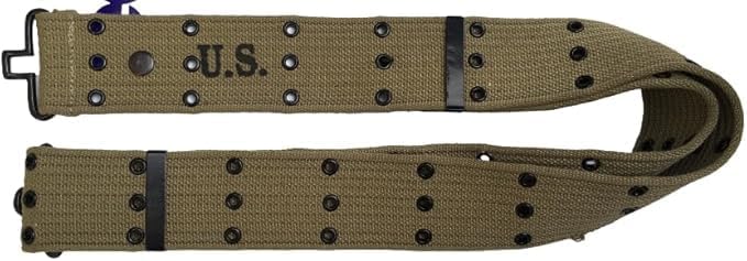 This Pistol Belt is a WWII reproduction with U.S. marking. The belt is adjustable and comes in 2 sizes. This belt is sometimes commonly called a web belt. 3 holes just match original item and you can hook your 1911 pistol holster or X strap and first aid pouch or magazine pouch etc to it. Belt have adjustable length fit for different waist sizes upto 56 Inches.
