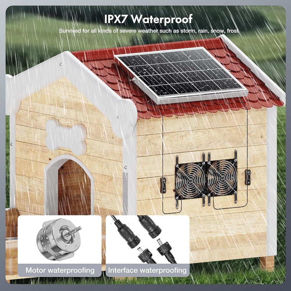 Solar Powered Fan, Solar Fan for Outside with Monocrystalline Panel, 5.6'' High Air Flow Fans, and 16.5 ft Cable, IPX7 Waterproof for Chicken Coops, Greenhouses, Sheds, Dog Houses, Exhaust, Vent