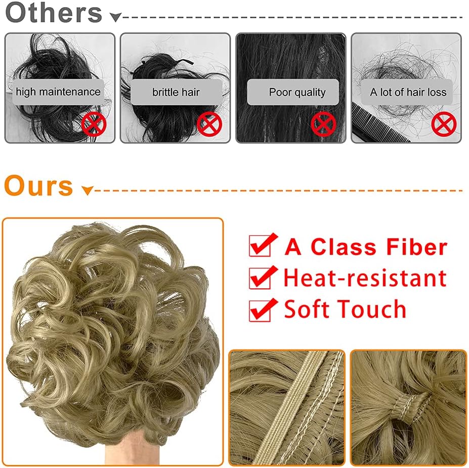 Function - High quality synthetic hair fibers to ensure naturalness, gloss, softness and comfort that are very close to real human hair, perfect for adding volume and fullness to a updo or a ponytail. Recommend 2 pieces messy bun scrunchie to wear together.
