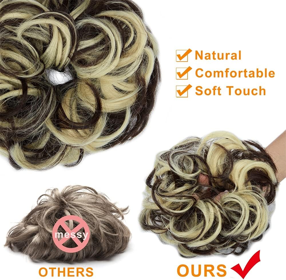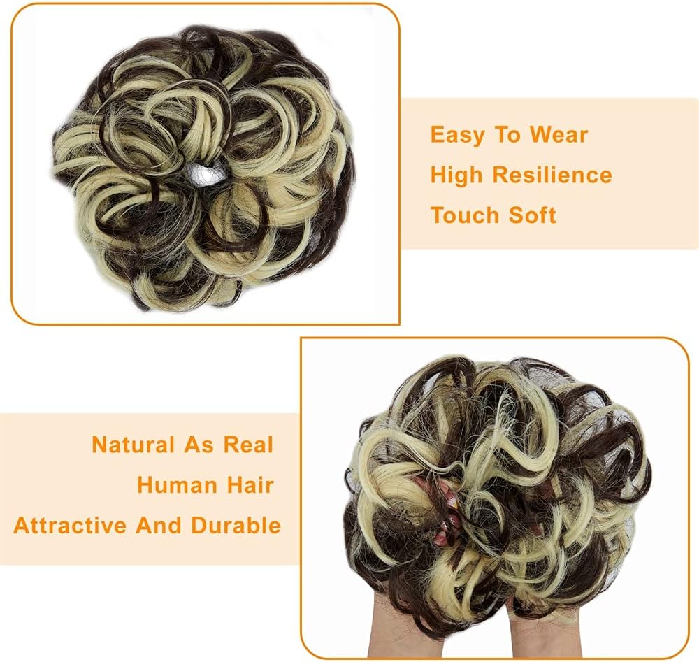OMGREAT 1 Pack Messy Hair Bun Extension Synthetic Hair Fibers, Adjustable Size, Easy to Wash and Care, for Women Updo Hairpiece, Dark Brown Mix Bleach Blonde