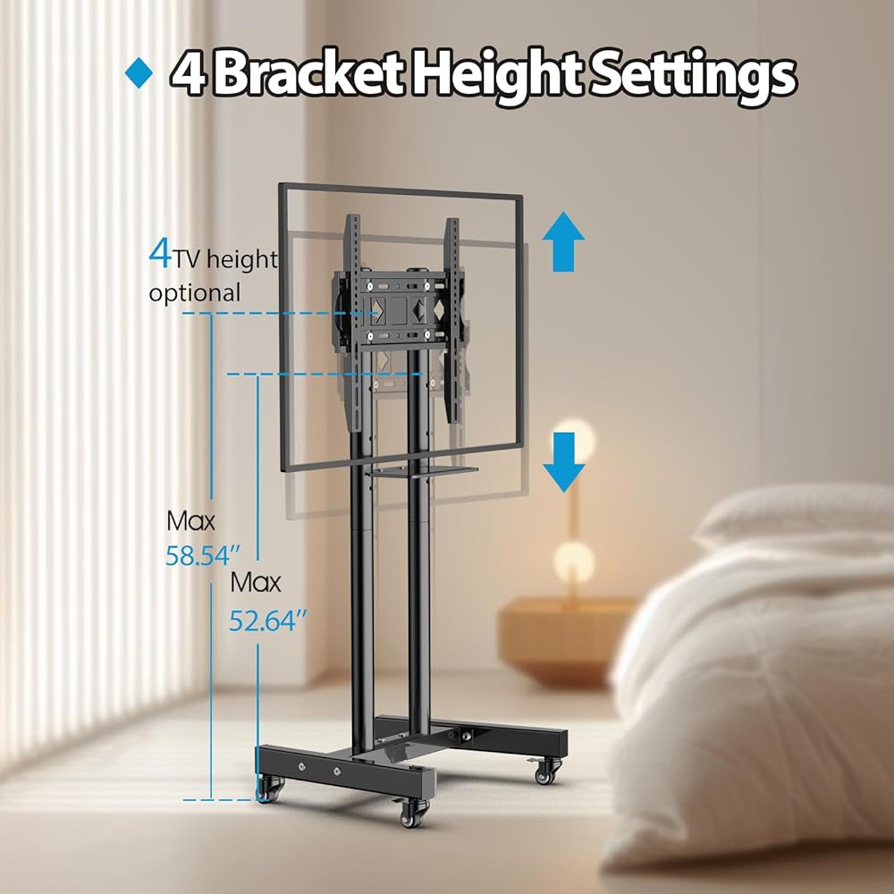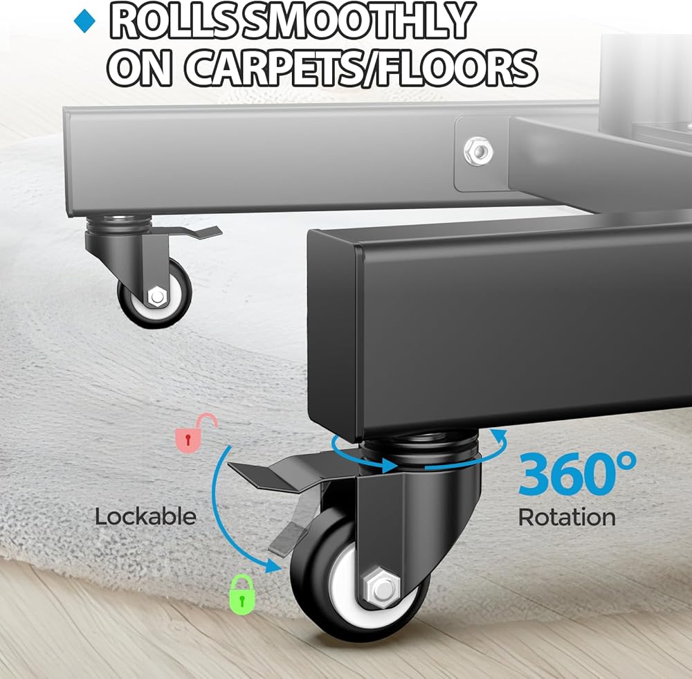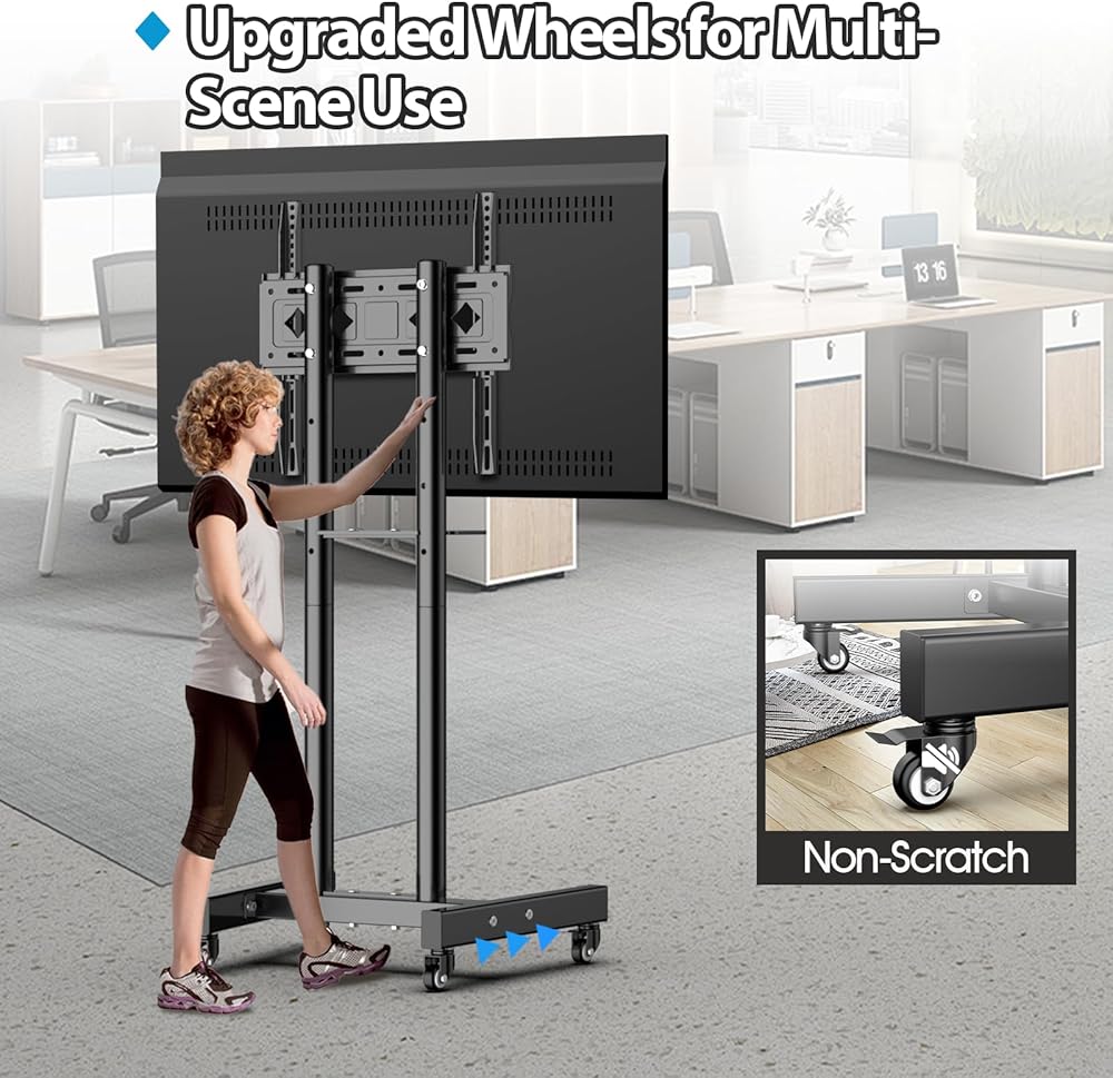 【Easy to Install】 Rolling tv stand comes with the necessary screws for installation (including the screws used on the back of the TV), manuals and other necessary accessories. You can also simply install it quickly like a professional installer. Please contact us if you have any questions during the installation process.