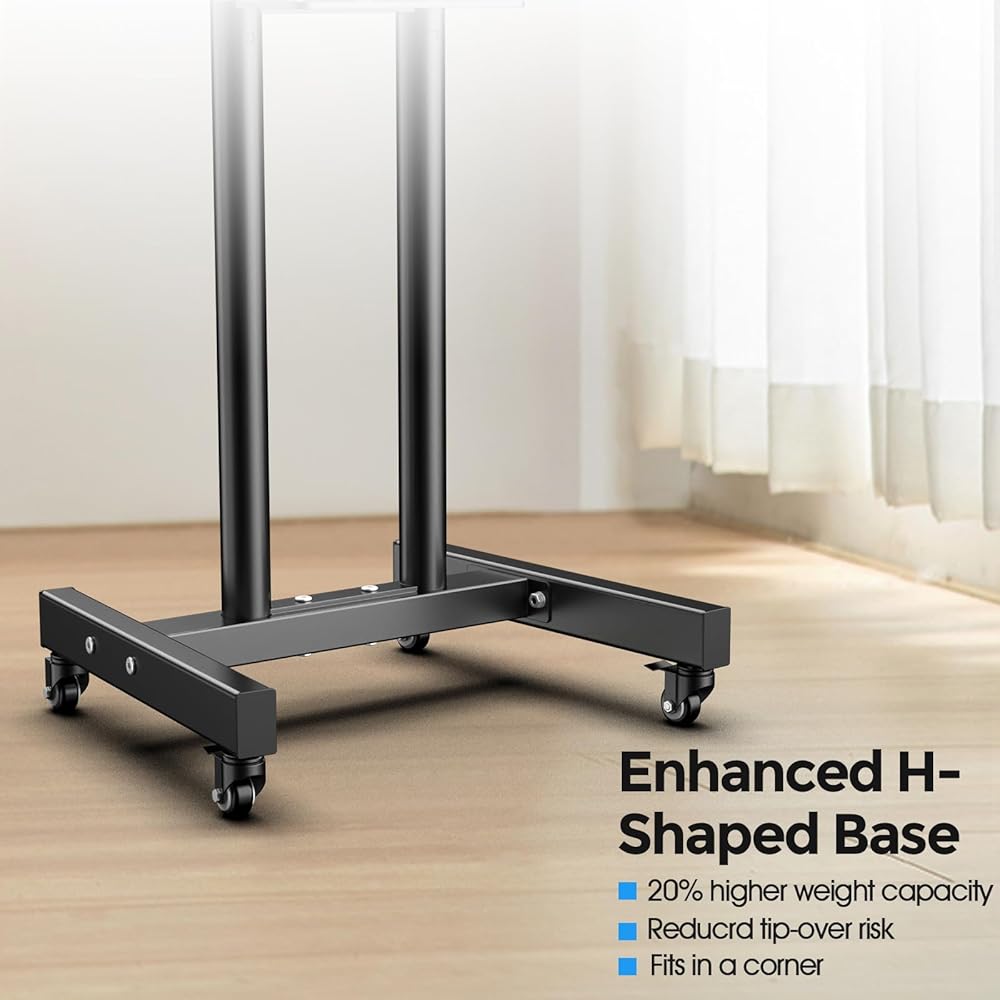 【Wide Use】 TV rolling cart with wheels It is ideal for bedroom, office, hospital, home, school, living room, boarding house, hotel, laboratory, church, airport, hall, shopping center and anywhere else. It's great for video conferencing or presentations at trade shows, business, PC gaming or entertainment.