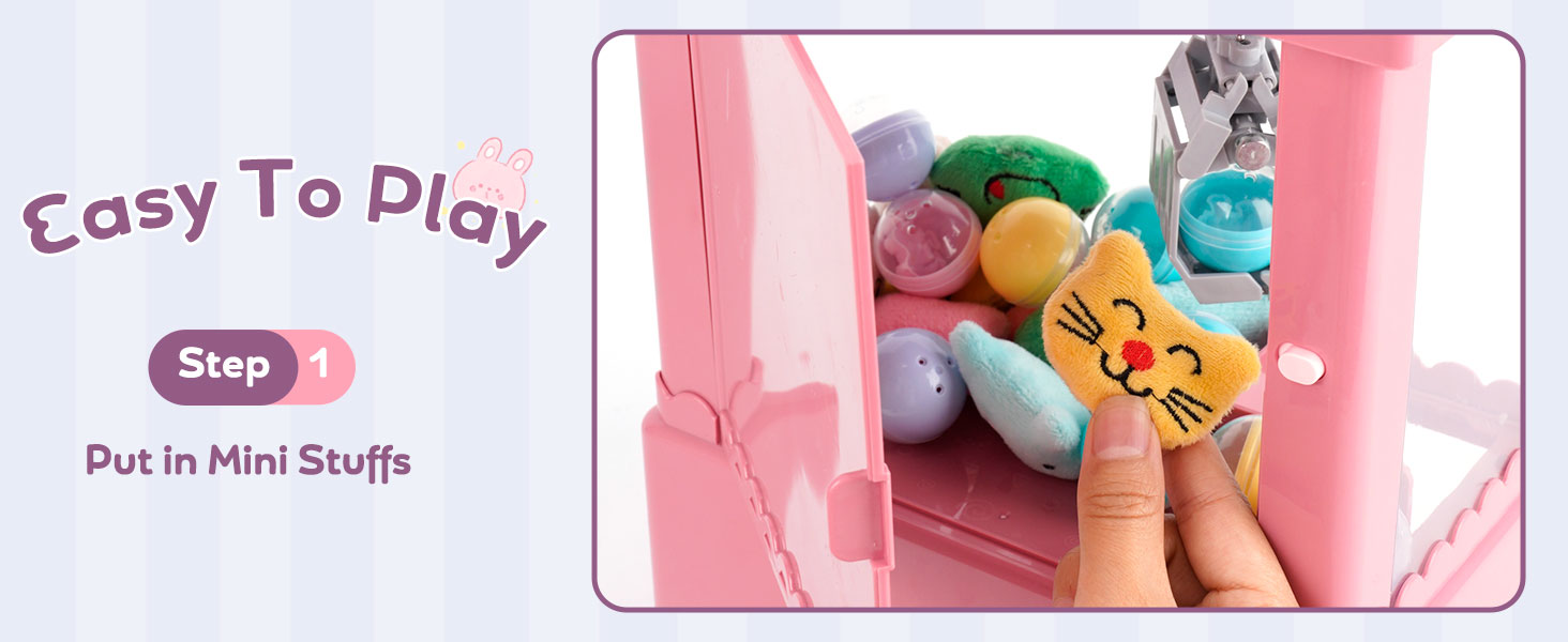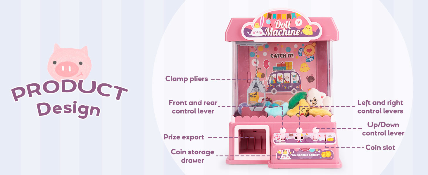 【60-second challenge】In oder to make a fun competition, we designed the 60-second challenge mode! Kids can compete with parents or friends who can grab the most prizes before time runs out. Get ready to have more fun from competition with our dool claw machine!